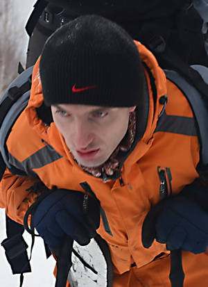 С выходом на коренной берег в рослый сухой лес настроения в группе ощутимо улучшились. Шли потом по заснеженным просекам. Стали подбивать состав. Не досчитались Русьянова. Заработала активно связь по рациям. Когда дорогу преградил выехавший на смычку джип Эдуарда Лимонова, группа пришла в неописуемый восторг. Тут выяснилось окончательно, что Русьянова с нами нет. Причем не только Русьянова, но и Сергея-Викинга (финалиста мюзикла "Оральные Батлы на Гайне").