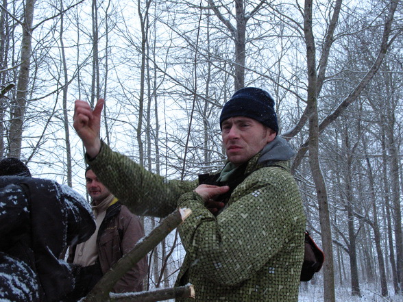 Дальше идти было легко. Впереди была солянка, костер, баня. Эдик очень устал нас ждать, поэтому в очередной раз выехал навстречу. Как все обрадовались, увидев его машину в заснеженном лесу! От Лимонова веяло цивилизацией, уютом и теплом. Он загрузил рюкзаки женской части команды и двух девушек в машину.