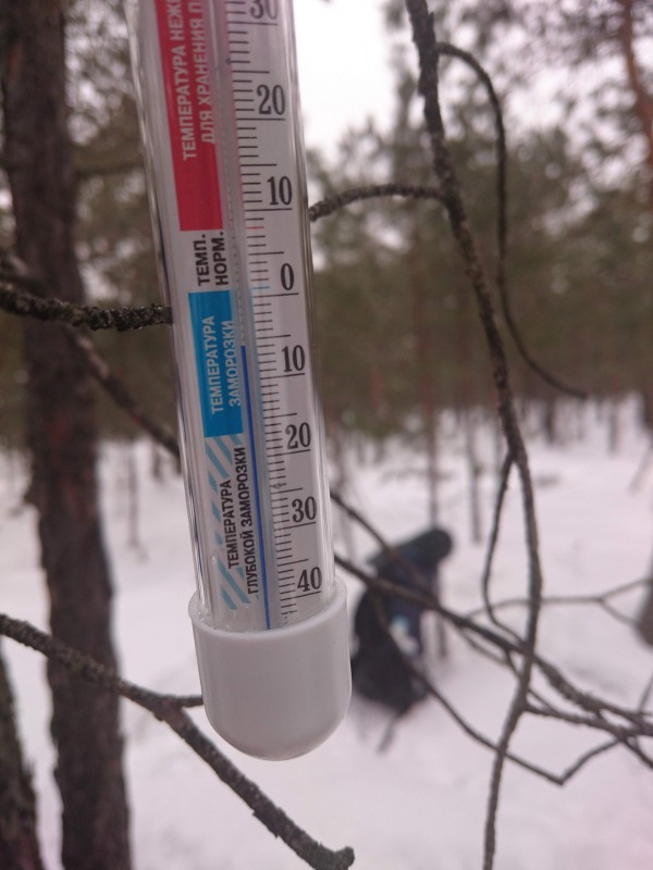 По озеру передвигались так же легко, подгоняемые холодным ветерком. На втором берегу озера градусник Марины показывал, что сейчас температура заморозки, и мы все «отморозки» раз вытворяем такую глупость – зимой в мороз попёрлись Бог-весть куда, по болотам погулять. Просто градусник поддерживал мнение большинства беспозвоночных, которые активному отдыху предпочитают носить диван на спинке дома в тепле.