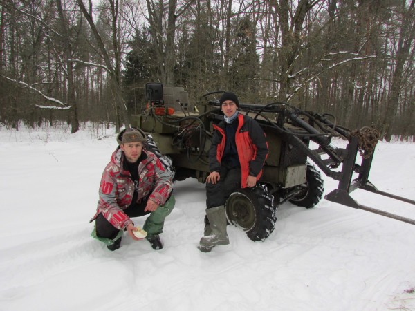 Очень они мне нравятся, т.к. помимо простого весёлого времяпровождения, эти интервью позволяют неплохо узнать друг о друге. Во время одной такой стояночки на замёрзшем болоте была даже «видиосъёмка», правда видио=материалы почему с этой камеры не дошли до сервера, видимо из-за повышенного радиационного фона (другой причины я просто не вижу) сильно барахлила спутниковая связь. К слову и обычная связь, мобильная, которой мы привыкли пользоваться тоже барахлила.