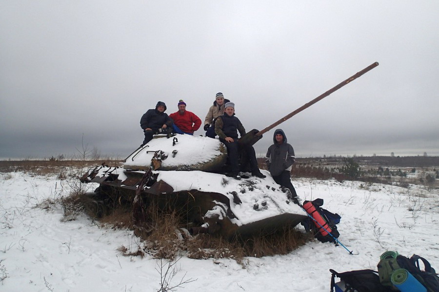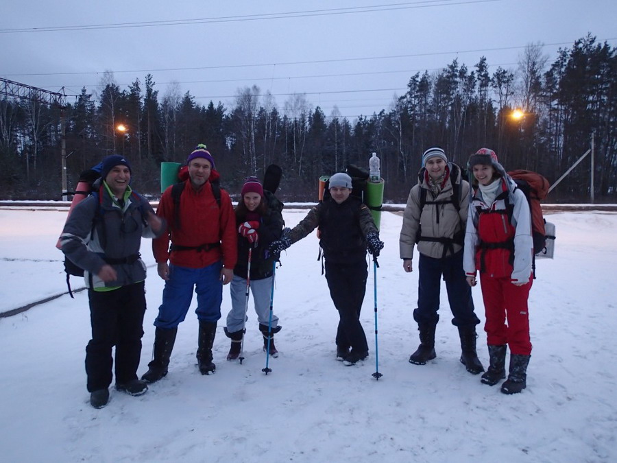 В электричке начали собираться вместе части походной группы. На станции «Пралетарская Перамога» мы, наконец, собрались воедино. Много ли, мало ли – но команда состояла из 7 человек. К троим ребятам накануне приехала двоюродная Бабушка из Удмуртии и после непродолжительного суда над каждым, мы объявили амнистию тем, кто так и не ощутил счастья проснуться морозным утром на свежем воздухе в палатке где то там, в дебрях Борисовского полигона.