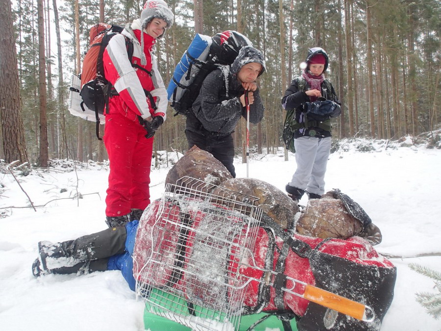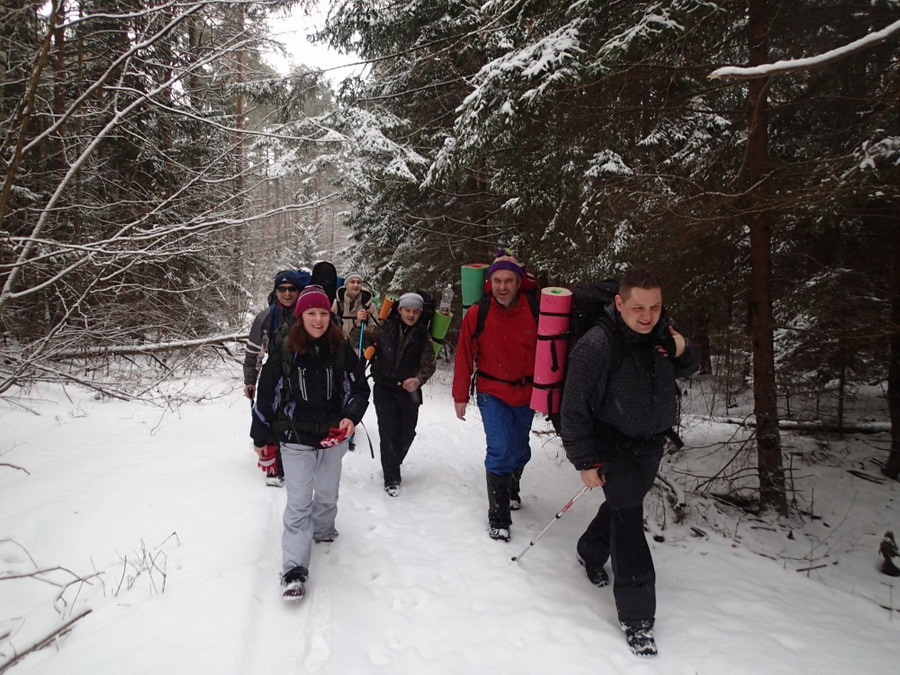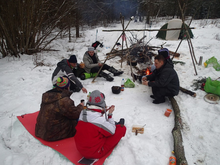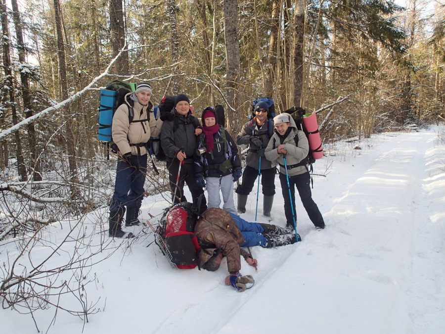 Накануне этого мероприятия мой коллега по работе Волосащ Сергей предложил прогуляться компанией по зимнему лесу с ночевкой. В программе были заявлены ночевка в палатке, рассольник, барбекю и купание в проруби. Мой супруг не долго раздумывал и вот, вместо того чтоб валяться под одеялком в выходные с любимым, мы напялили огромные рюкзаки и вышли из дома рано утром в направлении леса – приключений искать.