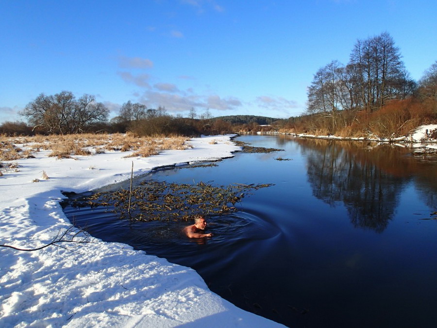 Среди утренних развлечений было окунание в Гайне. Паша, попавший под жесточайший прессинг со стороны Андрея, был стоек и в воду не полез. Махнув на всех рукой, Андрей показал нам всем как это делать.