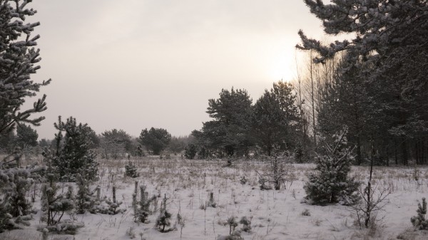 Через пять пешеходных серий и то есть четыре привала между ними вышли на северный берег Бобровичского озера. Здесь участок песчаника. Кроме участка с юга тут берег выше остального заболоченного окоема. Каждый километр пути у нас были сегодня разные. Будучи еще совсем недавно в болоте, мы вышли в савану с сосновым редколесьем. Аккуратные кругленькие сосновые кроны стояли снегом будто припудренные.