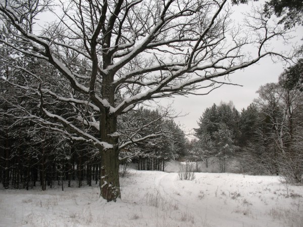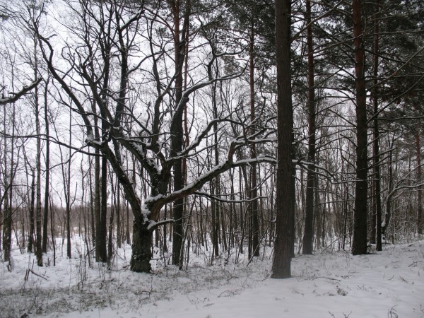 Путь как и вчера проходил в основном по дюнам и каким-то участкам между ними. Дюны были нередко лысыми песчаными полянами. По границам их росли иной раз дубы. Толщина комлей подчас была исполинской.