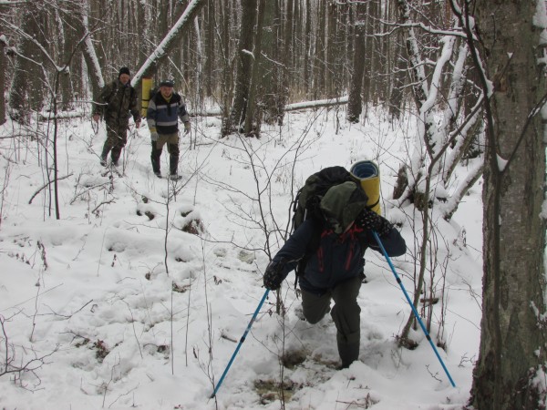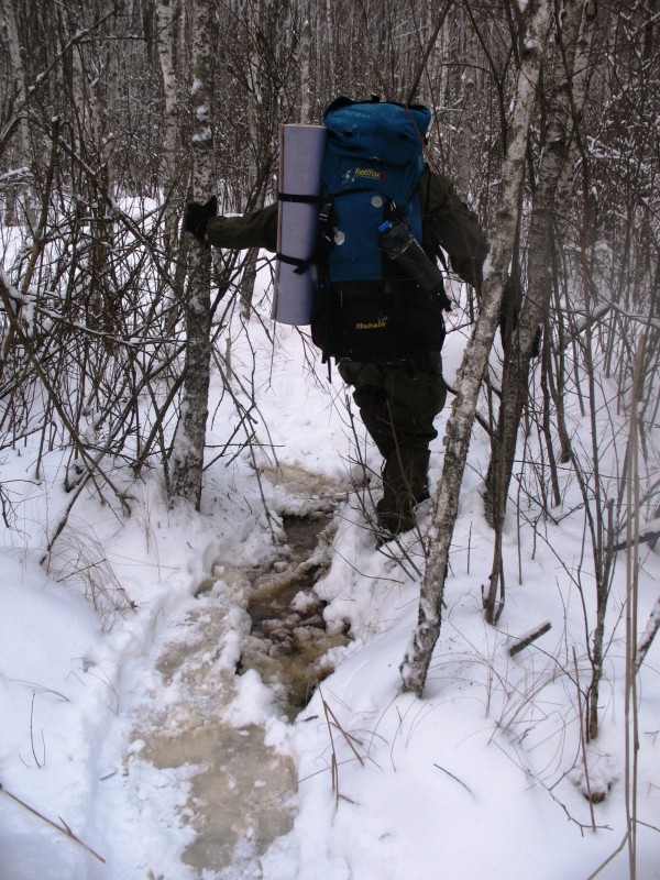 Погода. Два дня был небольшой мягкий мороз. Снега не много, но на земле и кронах деревьев именно столько, когда поход уже получается по настоящему зимним, но еще нет затруднения в ходьбе и не требуется трудоемкой тропежки. Ситуация получилась почти сходной с атмосферой ПВД 77А «По следам Тихомирова Кирилла», проведенным месяцем раньше. Пасмурно и без осадков, но только мороз меньше. Полное отсутствие ветра и гробовая тишина в лесу.