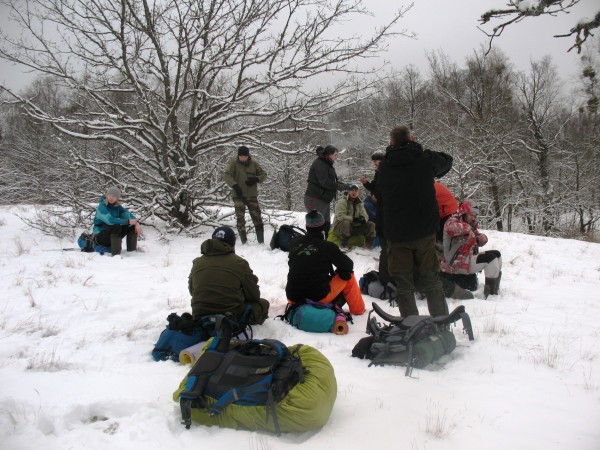 Для лагеря место подходило как нельзя лучше. Это была своеобразная поляна на возвышенности (очередная дюна). Не кочковатая. В центре даже росло несколько молодых дубов. Окружена поляна лиственным лесом. Бросались в глаза березы сильно пораженные омелой. Её шары будто грачьи гнезда увенчивали кроны деревьев. Дров самого разного размера и сухости было в большом достатке. Скажем лет пять и больше назад в подобных походах бросались переодеваться и активно перетряхивали свои вещи. В общем бивуачичли плохо. Не первый раз замечаю, что в этом направлении произошли ощутимые положительные сдвиги. Очень быстро стали стягиваться дрова и ускорилось приготовление трапезы. Неплохим оказалось изобретение даже в ПВД оговаривать заранее дежурных.