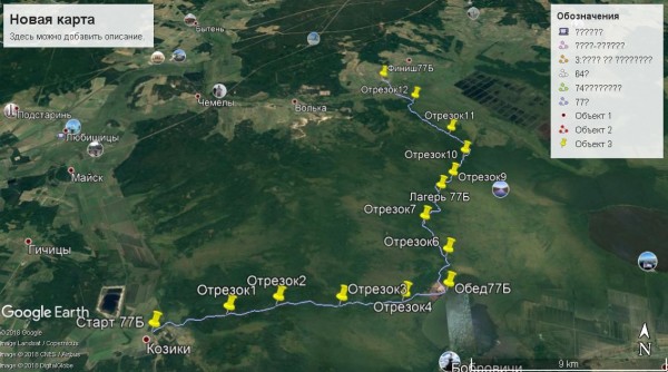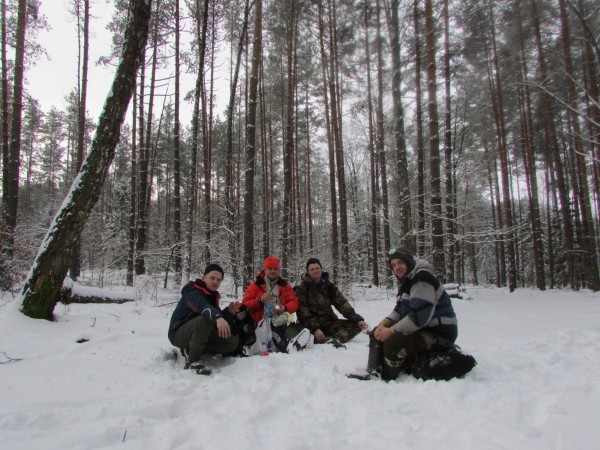 Сегодня пройти нужно 24,8 километров. Для удобства трек разделен был на 8 серий. Пять до обеда и три после. Первых несколько серий шли на северо-восток. Было темно и совершено тихо. В темноте лишь мерцание налобных фонариков и звуки ходьбы. Шли отдельно своими подгруппами. Связывались по рациям (три гомологичных передатчика марки Motorola). Сначала по лесной, но не очень разъезженной дороге. Чем дальше мы отходили от деревни Козики, тем более она становилась запустевшей. Потом и вовсе бы её потеряли в темноте, если бы не навигаторы.