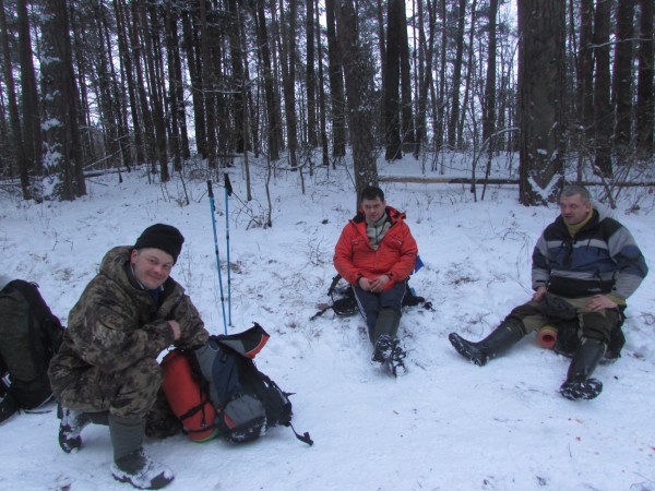 Обед был с сиестой. Несколько часов. Иные умудрились даже дремать. Лежа на рюкзаках. Собралось вместе две группы – 15 участников. Только где-то бродила группа под предводительством Сантехника. Между собой мы связывались по рациям. Причем бродили они не соизмеримо долго. Расположились в группе отдельно стоящих сосен. Нашлись быстро в нужном количестве сухие дрова.