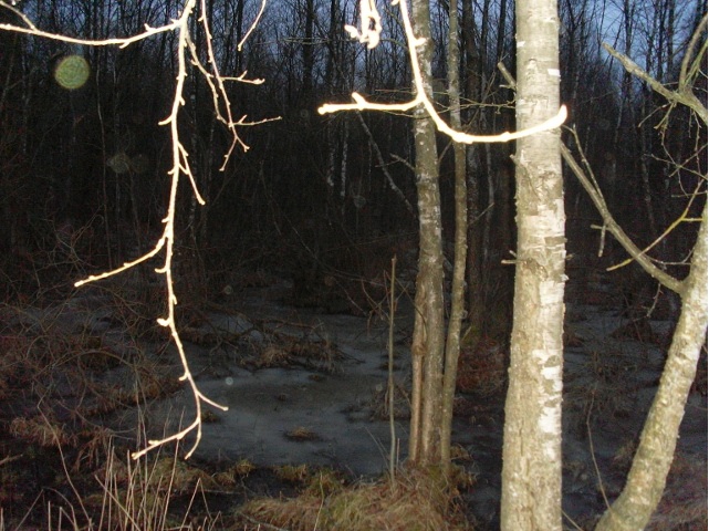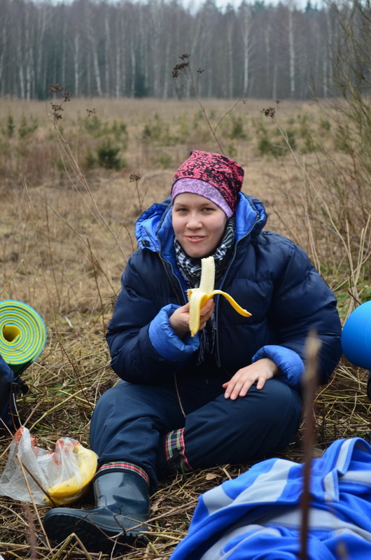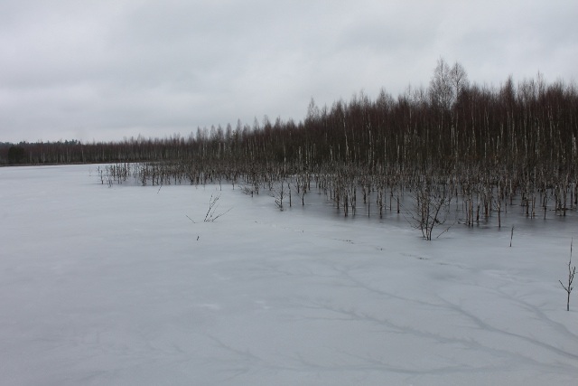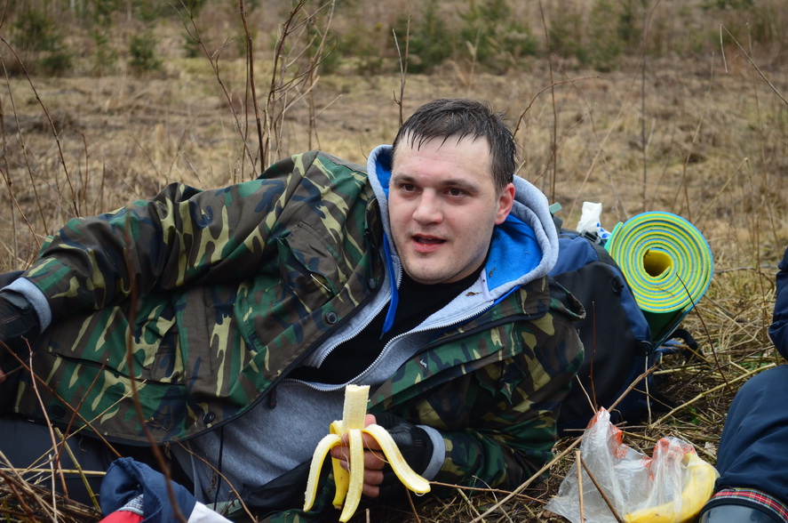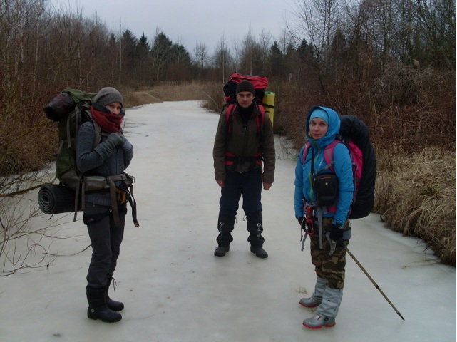 Немного отойдя от дороги, устроили привал с завтраком. Смирнов пояснил, что данное место предполагалось в качестве первой ночевки (с пятницы на субботу). Место являло собой покрытое ледком болотце, что давало ясно понять, кто мог быть автором идеи ночевки здесь.