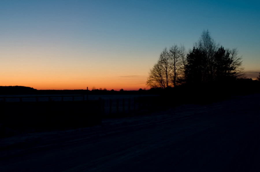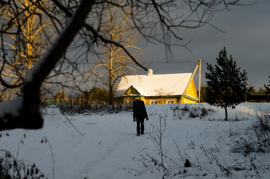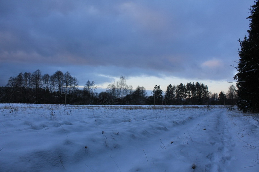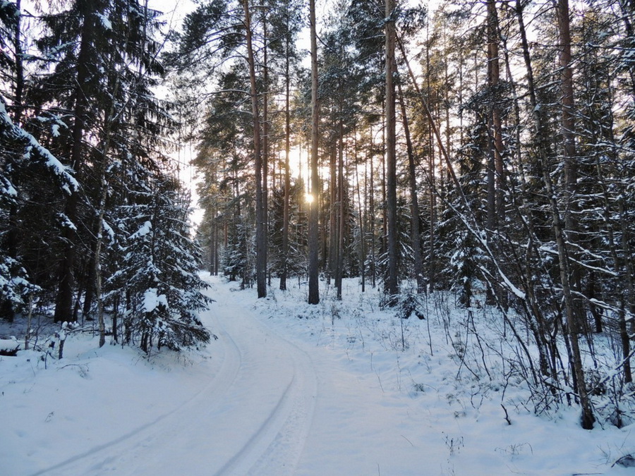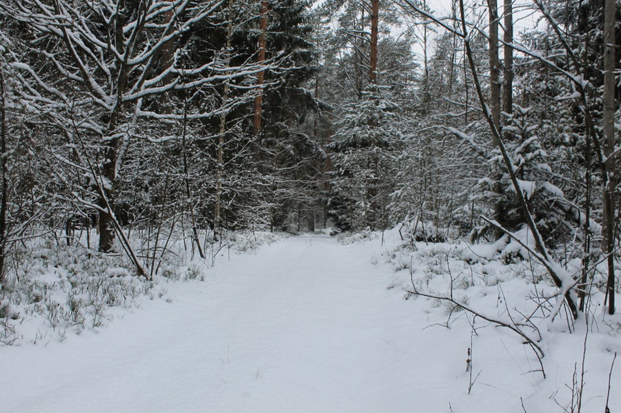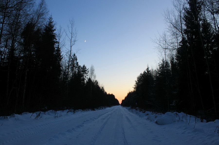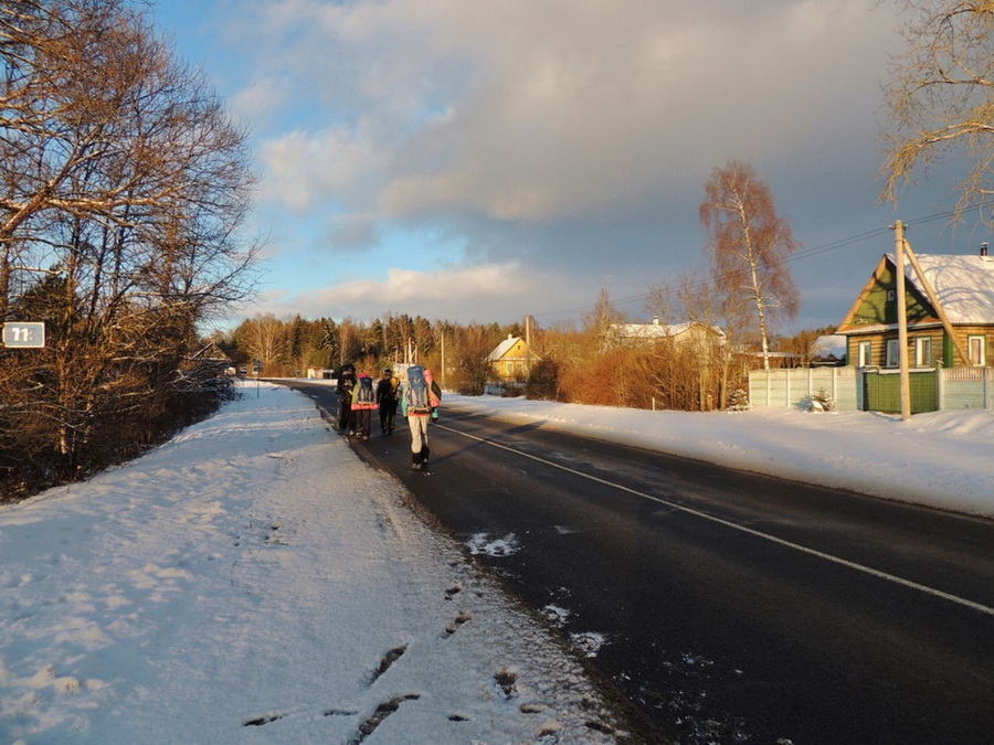 Вскоре мы вышли из леса на дорогу. Возвращаться в лес и двигаться вдоль дороги не стали: несмотря на небольшое расстояние для ПВД длительное хождение по снегу успело уже несколько утомить.