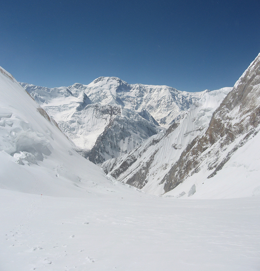 Площадки 6100 и 6400 метров были заняты. И если на 6100 ещё можно было бы воткнуть нашу палатку, то на 6400 метрах просто никак. В принципе для одной палатки есть уступы и можно врезаться и в других местах, так что тактика ставить лагерь выше перевальной перемычки более верная, особенно при переменчивой погоде.