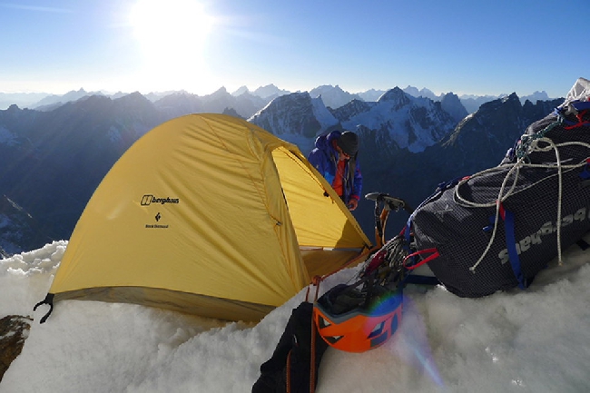 После акклиматизации мы вышли из Базового лагеря на штурмовое восхождение 4 октября, и после открытого бивуака на отметке 6200 метров добрались на вершину горы к 9:00 утра.