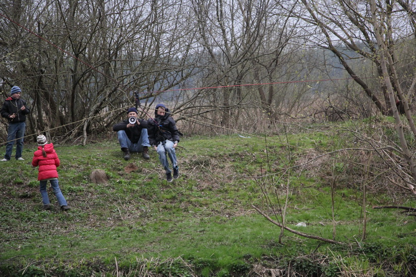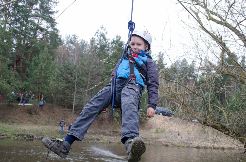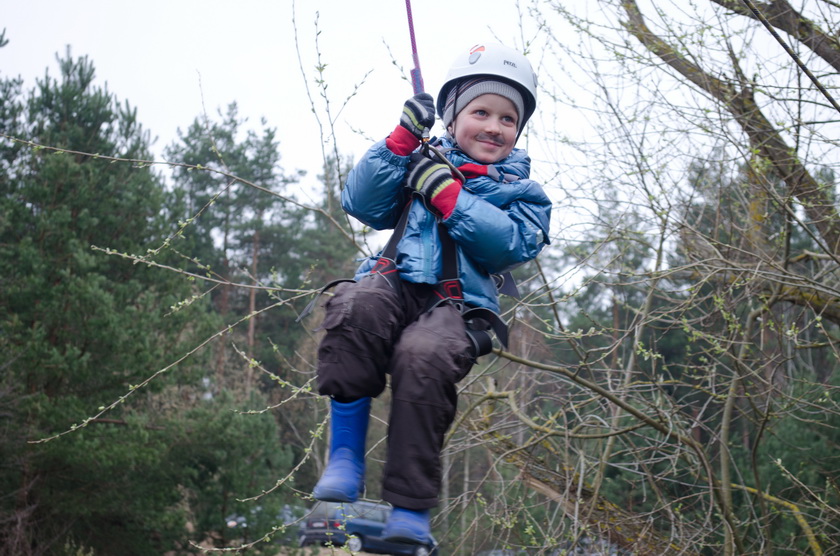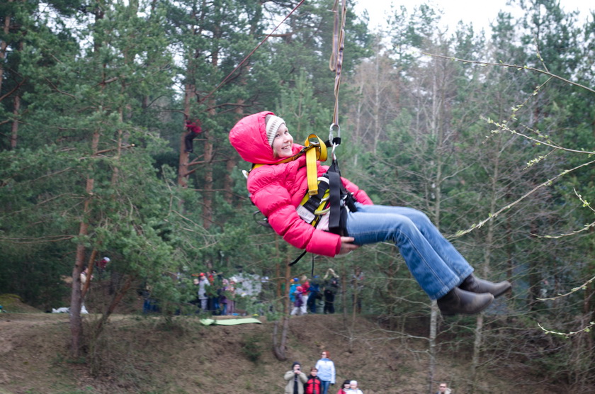 Лифт поднимал детей на дерево. На дереве инспектор перестегивал человека на тандемный ролик и - .... раскачивая, отпускал!