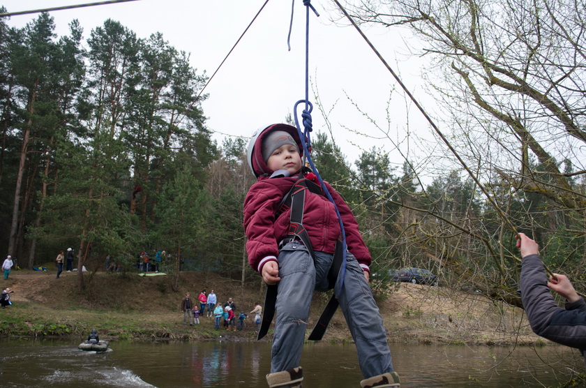 С утра мы коменданты лагеря действовать принялись оперативно, понеже время было в обрез. Одного только мусора с ристалища собрали шесть мешков от сахара.  Троллей с одного берега на другой натянули плохо. Точнее хорошо. Конфигурация берега была такова. Что годился он как нельзя лучше для детей, но не совсем для взрослого. При адекватной длине уса можно получить по жопе от берега, при не адекватной по голове от тормозной веревки или коснуться троллейной. На всякий случай троллей протестировали многократно.