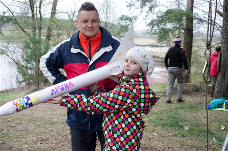 Кроме посадки имитировался сегодня и старт. Был импровизированный пусковой стол. Ракета (пластиковая бутылка), реактивная тяга, вместо ракетного топлива использовался сжатый воздух, нагнетаемый насосом. Убирались держательные цапфы – ракету выстрелообразно подбрасывало на десять и более метров.