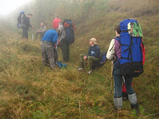 Frank, Ашик и Дима Кашлач залезли в сырой и узкий скальный камин до тех пор, пока не стало передвигаться без страховки опасно. Глаз с непривычки был какой-то неуклюжий и перескакивал по камням поток воды без свойственной ловкости, будто в насрал в штаны. Пока гуляли и бродили, появились первые проблемы. Эдуард Лимонов, перебираясь через ручей, потерял трекинговую палку. Пиротехник Саша Павлюченко эту палку попытался самоотверженно спасти. И палка утонула, и упав, он повредил о камень кисть руки. Быстрее всего разрыв одного из сухожилий длинного сгибателя пальцев. Дело серьезней, чем может показаться – ограничение подвижности второго пальца (важен при письме) да еще и на правой руке. После похода разберемся, нужно ли оперировать, а пока что жить можно.