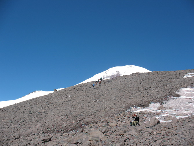 Но один день в конце похода самый раз. Так горные походы и надо завершать. Раньше, ещё при Союзе, туристы с Эльбруса уходили через перевал Донгуз-Орун в Грузию, потом спускались к морю. Получали на почте посылку "до востребования" с чистыми светскими вещами. На пляже альпинистов и альпинисток легко было отличить. Загорелые лица и кисти рук. Сами белые и в синяках.