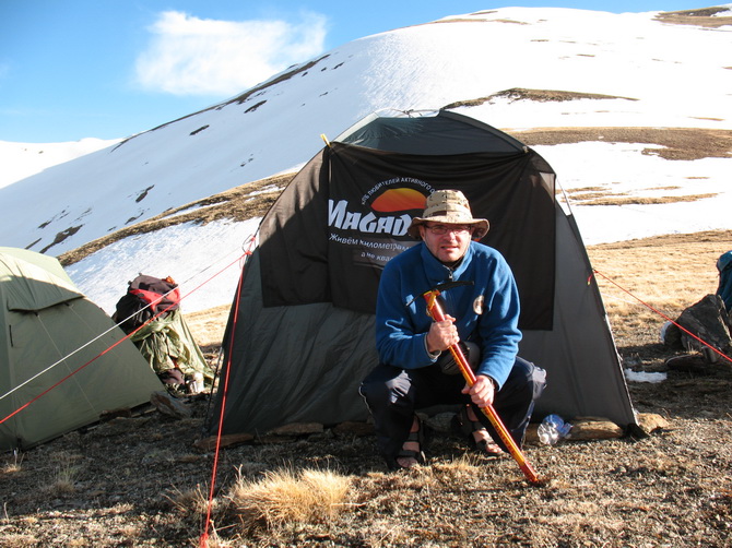 Была у нас ещё ко всему рыбацкая палатка без дна, к которой прикрепилось название «чум». Уже не впервой мы берем «чум» и к тому привыкли. В чуме дежурные обыкновенно прятались от ветра и готовили еду. Этот наш теперяшний был вот-вот, как Ленечкин, однако зеленый, без слуховых окон и растяжек было вдвое больше. Сломанные пластиковые дуги «починили» скотчем у Полковника во дворе за два дня до выезда. Чум-камбуз котировался, был почти всегда занят, причем не только там могли варить, в него еще набивались греться. Туда собирали перед сном и скидывали посуду и утварь.