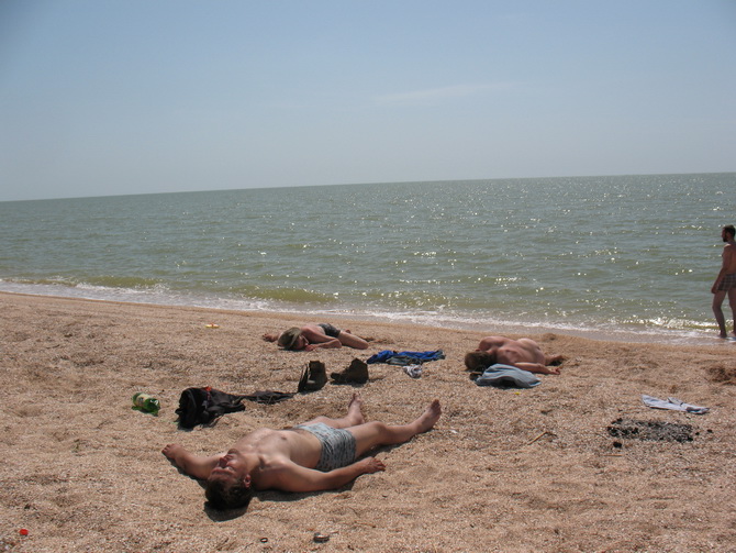 Требовалось море. Решили, что сгодится Азовское. Тем более, что Черное, как-то общепринято, а Азов пикантнее. Выбрали косу Долгая неподалеку от Ейска. Затарились предварительно в водочном магазине.