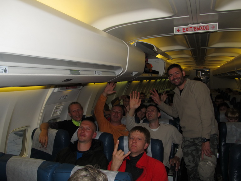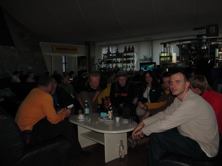 Провожающие, кто не за рулем, и подавляющее большинство участников мероприятия принялись за распитие крепких напитков. Именно столько, сколько требуется, чтобы еще спокойно пройти процедуру регистрации и досмотра багажа. Проводы сопровождались бурными напутствиями. Настроение было, как перед такими отъездами, праздничное. Мы снова идем в поход!