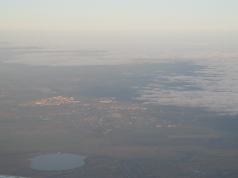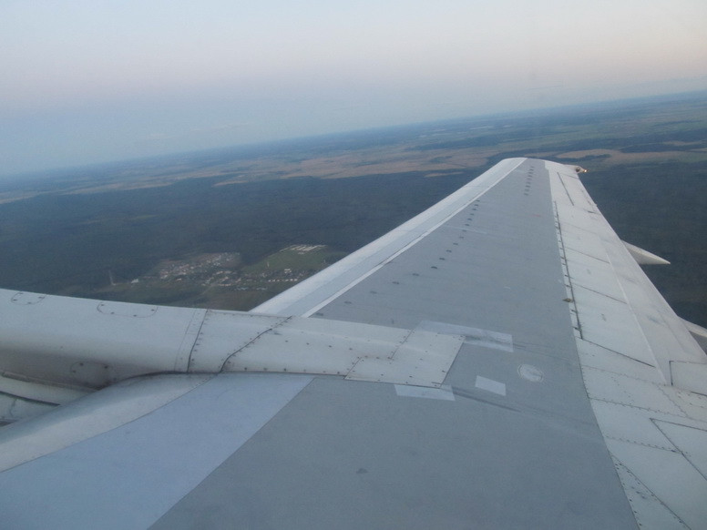С часовым опозданием нас наконец-то погрзили в самолет. Самолет взлетел. Летели вопреки дороги сюда долго. Как хорошо добираться куда-либо пьяным. Все проходит быстро. Часа три был хронический рассвет. Солнце все же догнало улетающий от него самолет. Ближе к концу полета все же поднялось и сделалось светло. Стали снижаться, заложило уши. С жутким скрипом двигались элероны. Внизу трубы – три трубы – Новолукомльская ТЭЦ, не иначе. Позднее, как на карте, читались меандры Березины и даже большое озеро Палик. А еще позднее Жодино, тоже как на карте, и озеро Судобле, южнее Жодино.