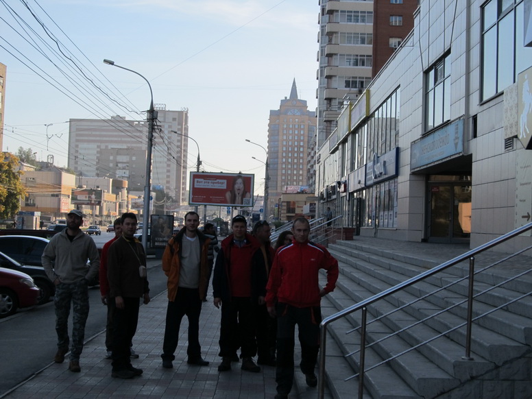 Дальше - в магазин туристического снаряжения "Снежный лис". Здесь нас ожидал газ. Тьфу, забыл как называется, но это оказался хороший газ. Открытие магазина пришлось ожидать. Ожидали. Водитель отпросился домой к маме. Мы пробовали где-нибудь поесть. Опять же ждали. Наконец ближайшее заведение открылось. Спросили тотчас меню, чтобы лучше сориентироваться. Нас сразу давай рассаживать. Рассадили. Меню на поверку оказалось неимоверно дорогим, даже до неприличия. Загремели стулья, мы все поднялись и ретировались вон. Новосибирск нас весьма быстро стал настораживать своими ценами. Сибирь не Украина. Нашли уличные питательные точки в неких неуютных дворах. Павлюченко купил что-то типа большого чебурека с капустно-мясной начинкой с дебильным названием "Дённер". После занесло нас в тесную блинную, где продавец и повар в одном флаконе довольно ловко справлялась с выпечкой.