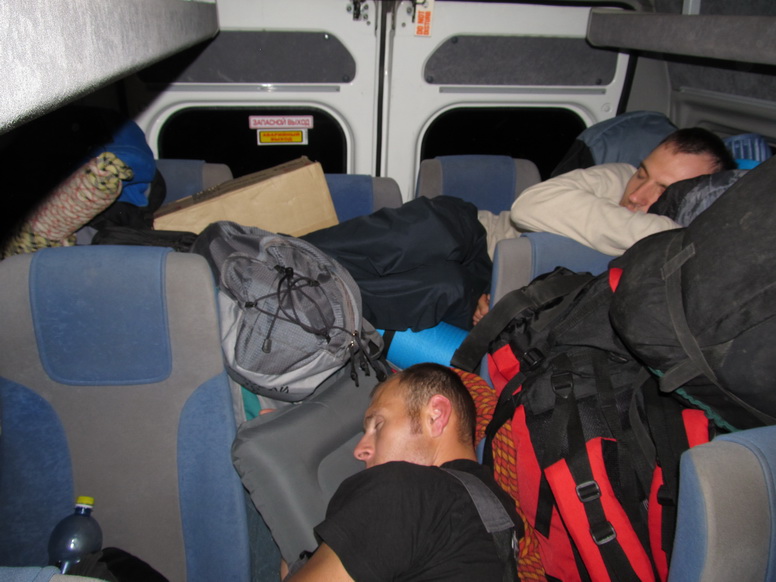 Как проехали 900 километров, я не очень то подробно и помню. Спал большую часть в проходе вдоль, Витя спал в проходе поперек. Несколько раз мы останавливались и выходили из машины. Пожалуй это и все, что запомнилось мне за трансфер туда.