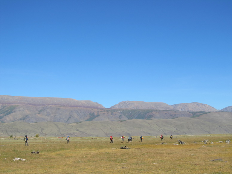 Наметили план добраться до озера Караколь. Потом спуститься к Мажою и форсировать его. Далее идти сколько сегодня успеем в направлении перевала Орой. Но мысленно большинство были дома. Как обычно, на том этапе, когда логистические вопросы решены (как обычно, и в других случаях, когда всякие вопросы уже кем-то решены и имеется прототип), возникли идеи улучшить дорогу назад. А именно, добраться до Бийска, оттуда по железной дороге до Новосибирска. С жэдэ вокзала в Новосибирске до аэропорта Толмачево.