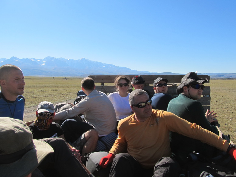 На "Перевалке" повыгружали из кузова вещи. Водитель был удивлен, что нам не прямо в долину Актру, а в Тюте. Они как раз и ехали по направлению Тюте. Рюкзаки тогда загрузили в кузов обратно. Ехали эти алтайцы, как оказалось, к небольшой ферме-кардону за сеном.