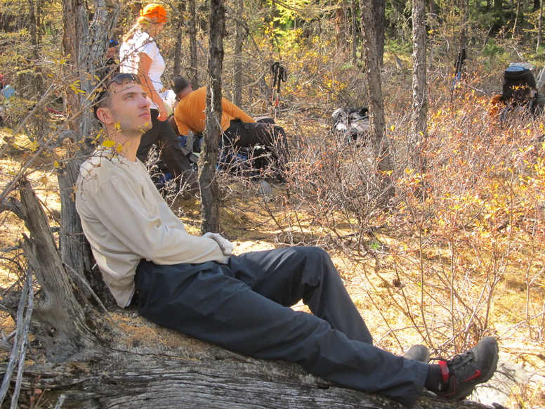 Группа тянула плохо (не физически, подборка была как раз не слабая). Мы прошли половину лишь ходового дня, а коллектив был уже надломлен. "Добили" повстречавшиеся кряжистые кедры. Под ними даже валялись шишки, с орехами, но все как один пустые. Чтобы стать прямо здесь, не хватало только воды. До воды удалось продвинуться лишь, пройдя минут пять ходового времени.