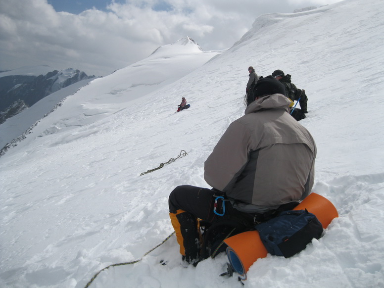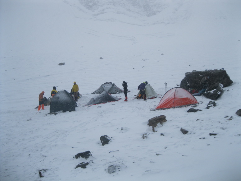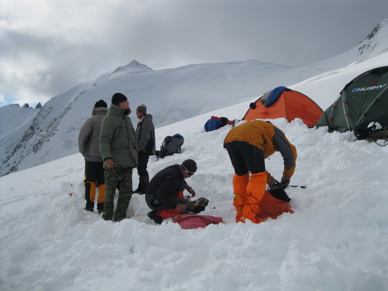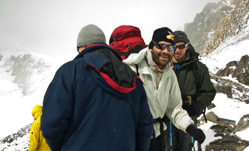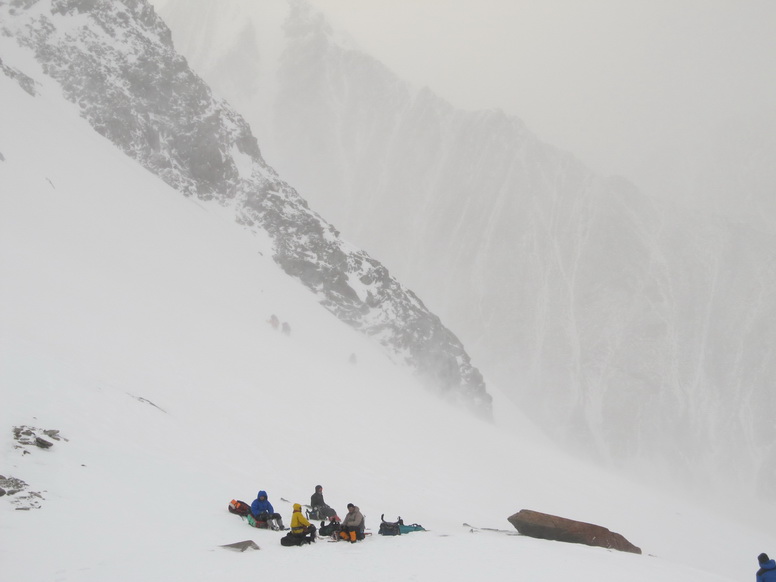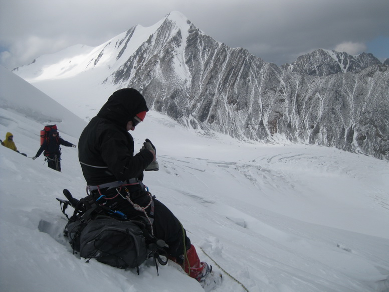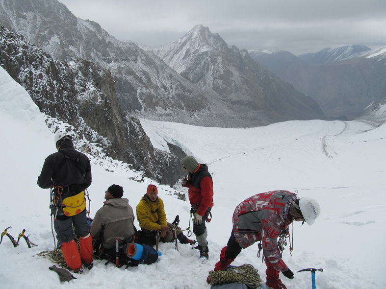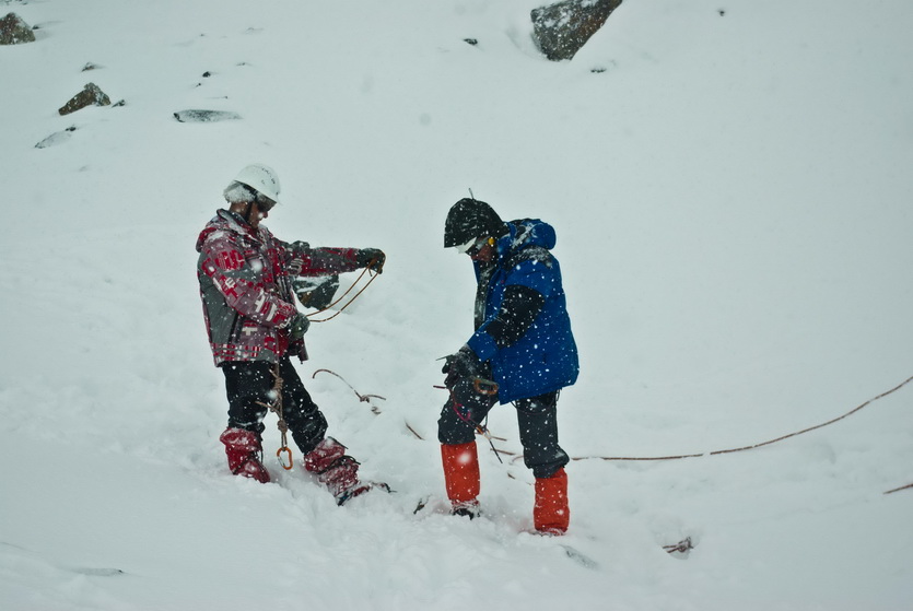 Рядом с лагерем были скалы. Глаз убедил Бая, что коль есть время и возможность, неоходимо репетировать сооружения станций. Имелись крючья скальные, куски основной веревки, репики, лента блокировочная. Игра заключалась в том, что пройдя каждые десять шагов нужно было соорудить станцию вне зависимости от того, удобно или не удобно. Занимались, лупили по крючьям айсбайлем, делали из репика и камней закладные элементы, блокировали, давли друг другу советы, нецензурно выражались. Поднялся Фрэнк и сообщил, что очередная станция у нас говно, а не станция – работает не во все стороны.