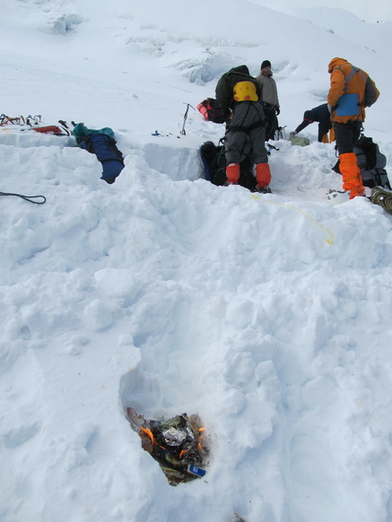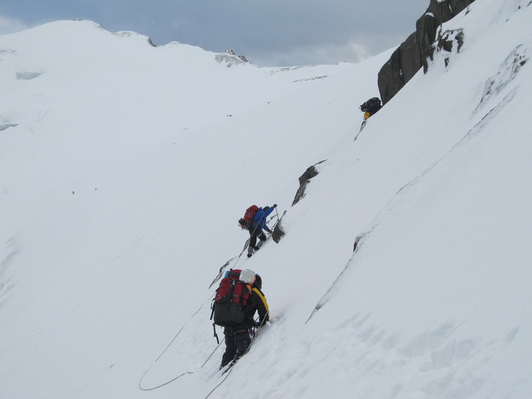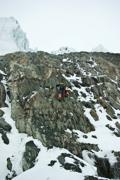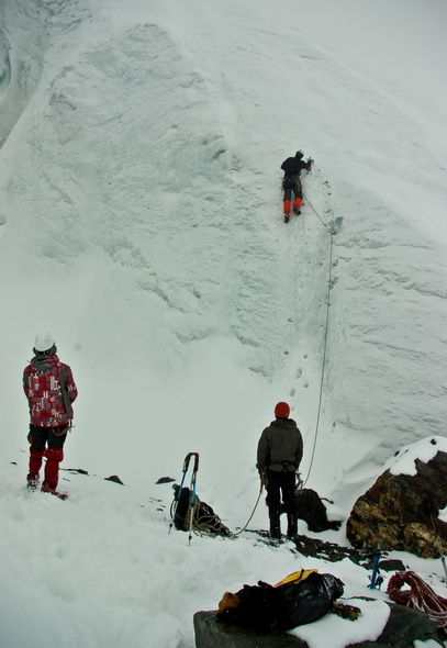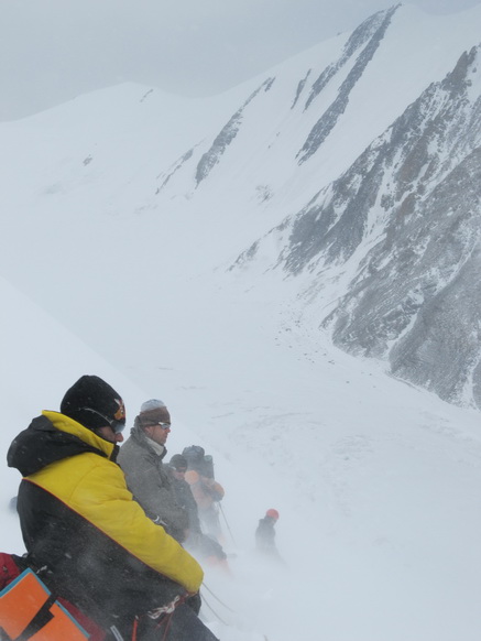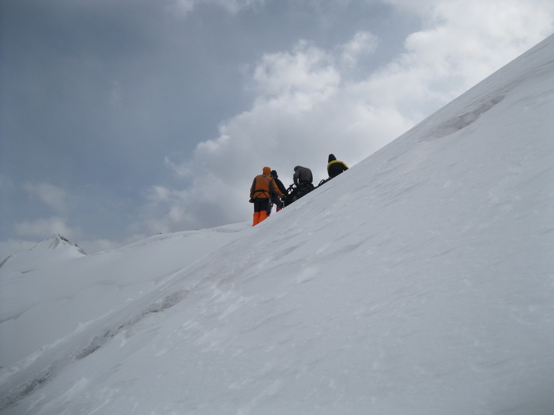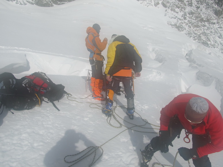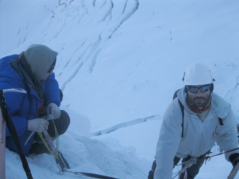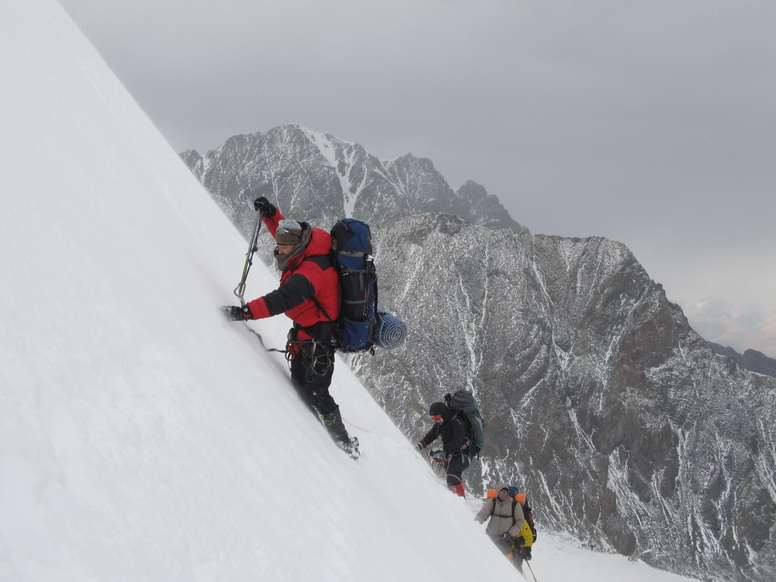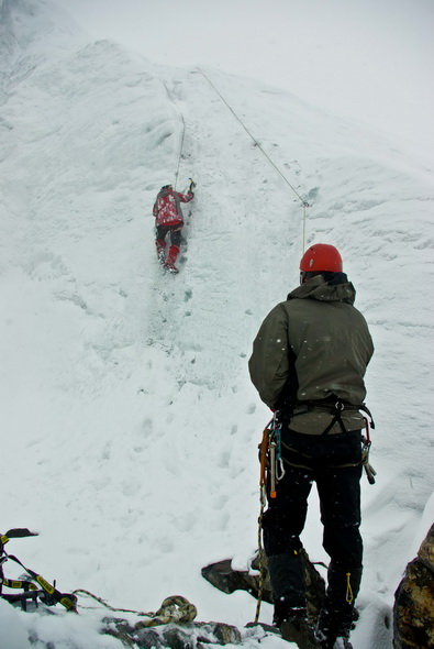 Рядом с лагерем были скалы. Глаз убедил Бая, что коль есть время и возможность, неоходимо репетировать сооружения станций. Имелись крючья скальные, куски основной веревки, репики, лента блокировочная. Игра заключалась в том, что пройдя каждые десять шагов нужно было соорудить станцию вне зависимости от того, удобно или не удобно. Занимались, лупили по крючьям айсбайлем, делали из репика и камней закладные элементы, блокировали, давли друг другу советы, нецензурно выражались. Поднялся Фрэнк и сообщил, что очередная станция у нас говно, а не станция – работает не во все стороны.