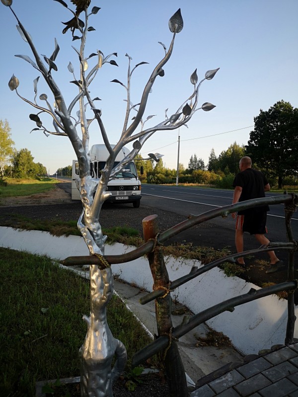 Прогорел глушитель. По дороге из Орши в Минск машина дико тарахтела. Особенно, когда газовали. Глазу нравилось. На подъездах между Смиловичами и Дукорой снова лопнула новокупленная в Грузии шина. Меняли. Глаз показал деревню с нетривиальным для Беларуси названием «Голомберг».