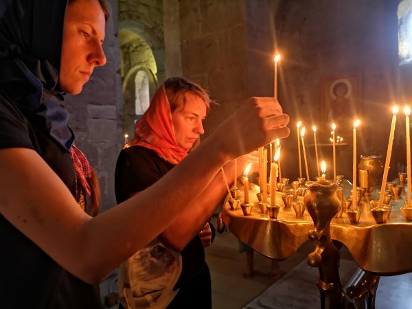 Там расположился монастырь Джвари. Два Алексея, спрятавшись в тень, пьянствовали.
