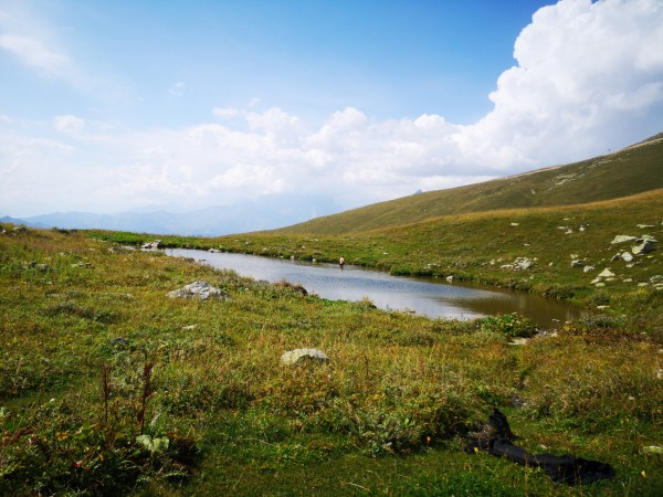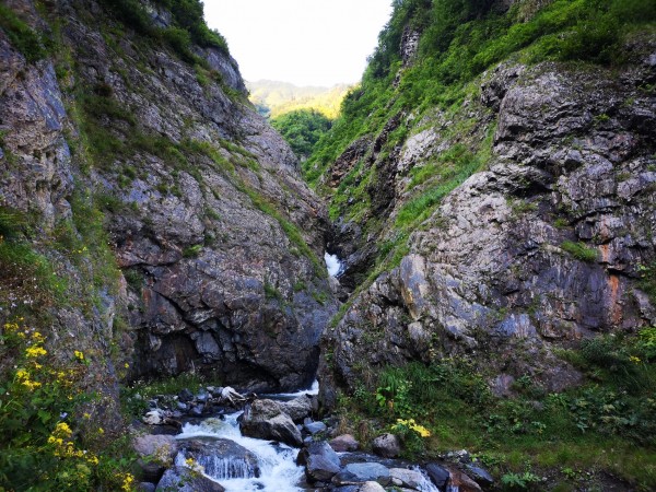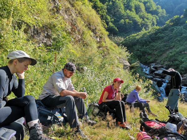 Съели еще один арбуз. Вышли. Трансфер позади. Под сорокоградусным испепеляющим солнцем началась активная часть. Шлось хоть и в тени, но тяжело. Вскоре миновали нарзановый источник. С меня ручьями бежала вода. Это были настоящие тропики. Насколько Сванетию можно любить за красоту, настолько её в августе можно ненавидеть за колючки, пыльцу и липнущие на жаре семена.