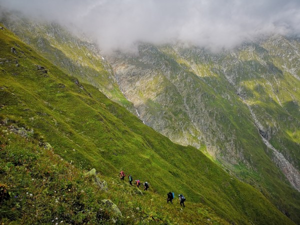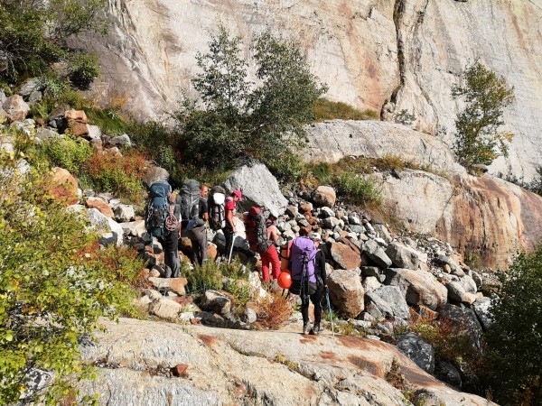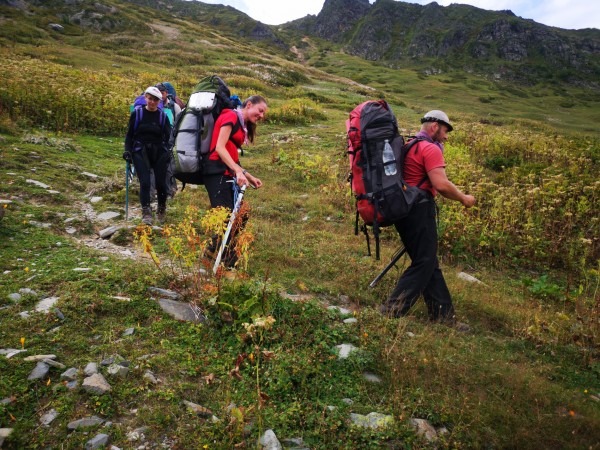 Если бы шли в первый день в обратном направлении на подъем, - то еще удовольствие. Условная тропа лазила весьма хаотично.