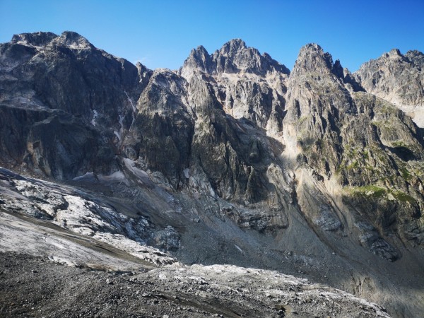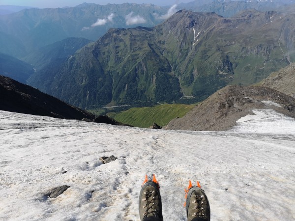 В Грузию изначально я и не собирался. Идефикс с Гестолой засел в голове довольно прочно. Хотелось пойти на неё со стороны России через Пик Есенина, и даже бы согласился я раскошелиться на коммерческих гидов. Для размочки планировалось восхождение на Уллуазаубаши (там справились бы и без гидов) с перевала Кундюм-Мижирги. А после этого только Гестола. Маршрут на неё через Ляльвер (считается самым технически простым) пограничники закрыли ещё пару лет назад, а теперь и всю Безенгийскую Стену. Так вот и занесло в этом 2018 ом в Грузию. Из Грузии на Гестолу ходить почему-то не принято. Но нашелся как раз подходящий августовский отчет 2013 года. Маршрут выглядел весьма привлекательно! Причем количество перил через перевал Западный Чурлениса 3А было подозрительно небольшим. Вычитал еще я где-то, что ключ маршрута это участок подъема с перевала Нижний Цаннер на Ляльвер. Дальше топотуха, правда, топотуха очковая. Перила и камнепадоопасность бышни Ляльвера пугали. От греха подальше пришлось отказаться от этого траверса. 4 часа только топать от Западного Чурлениса до вершины Ляльвера и в основном по гребню. Так и решил подняться из цирка Западного Чурлениса, туда и вернуться. Только странно, почему это не популярно?..