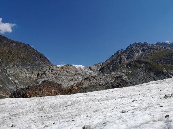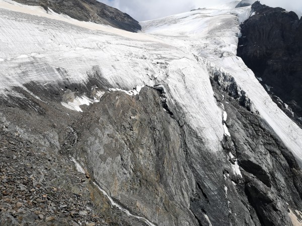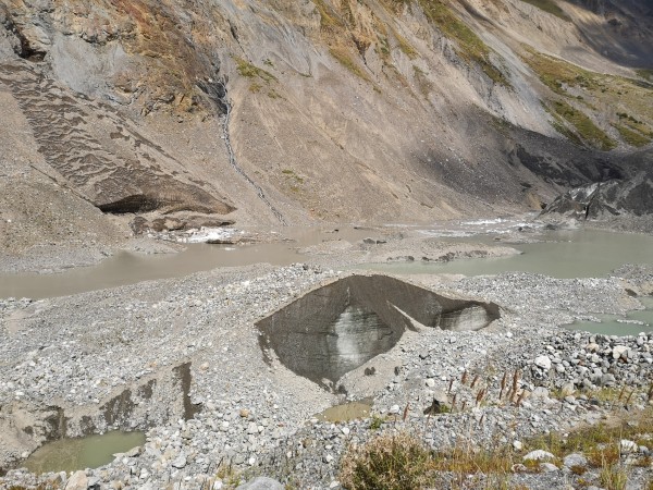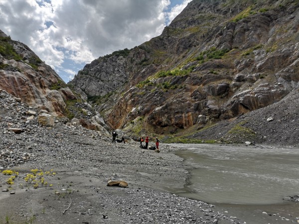 Привалились через сорок пять минут. Не могу даже предположить, как они образуются. Во льду здесь рядом шумел чистый прозрачный поток, сифонно и канализационно. Одинаковых горных долин не бывает, все уникальны и неповторимы. Но ущелье Цаннери особенно трансцендентно. Оно дальше резко и каньоноподобно сужается. Мы ползли по морене.