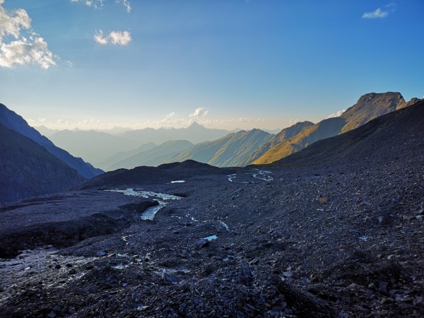 А назад шли быстро, взяв ноги в руки. Воду пили не останавливаясь. Глаз черпал из ручьев каской. Вечерело стремительно. Немного блудонули на спуске по моренным складкам. Глаз матерился сильнейшим образом.