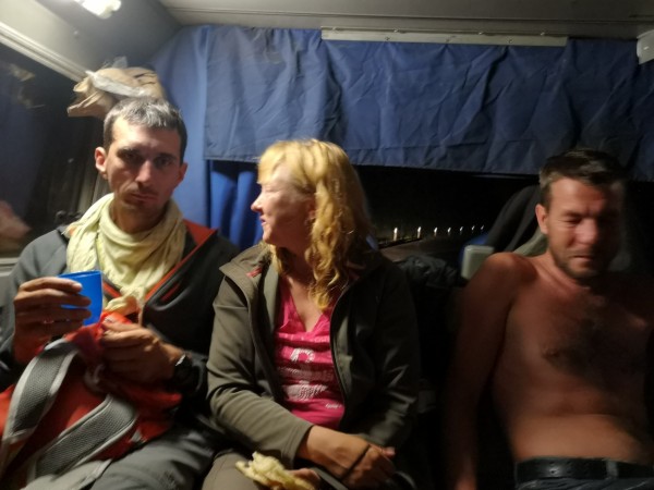 Двинулись в путь на закате и ехали потом еще до ночи. Снова свернули с трассы в степь. Ночевали кто в бусе, кто в палатке.