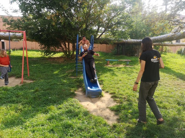 Томились в ожидании Максима. Жарко. Пьяницы (два оставшихся Алексея) катались на детской площадке с горки.