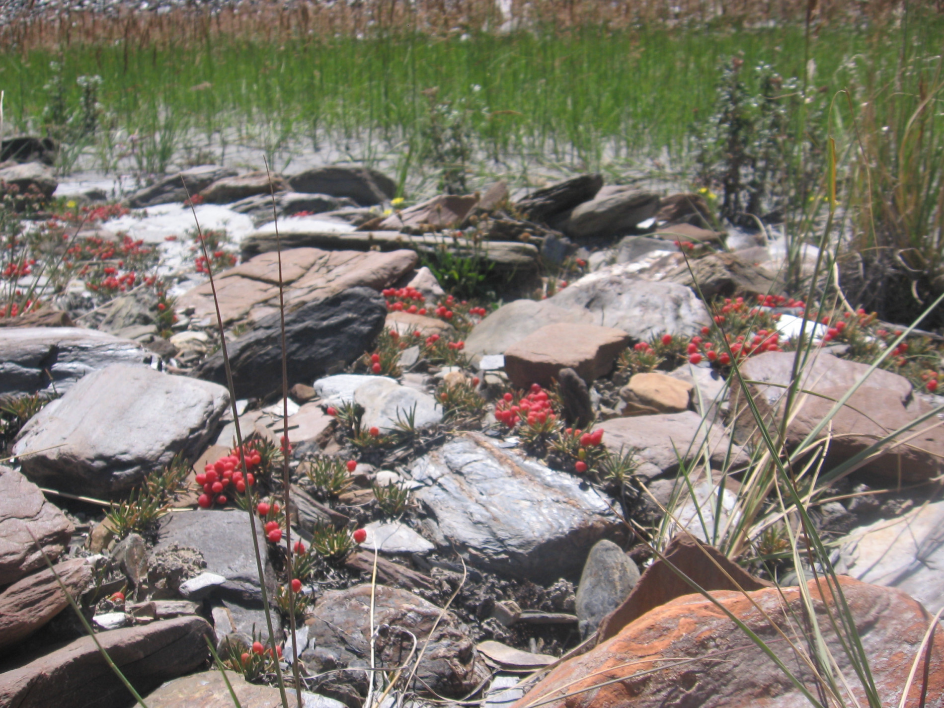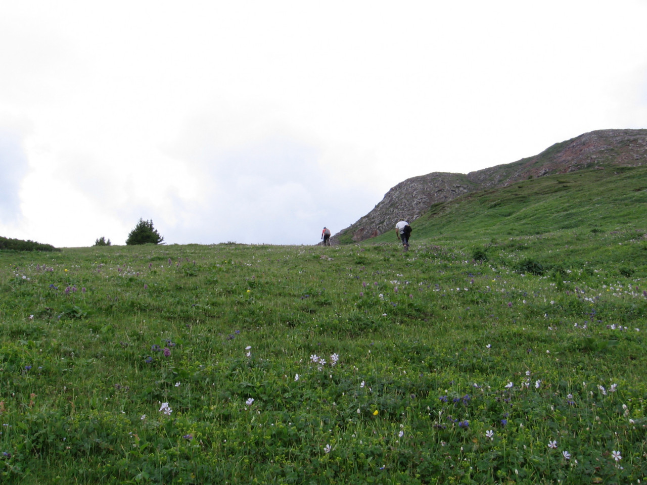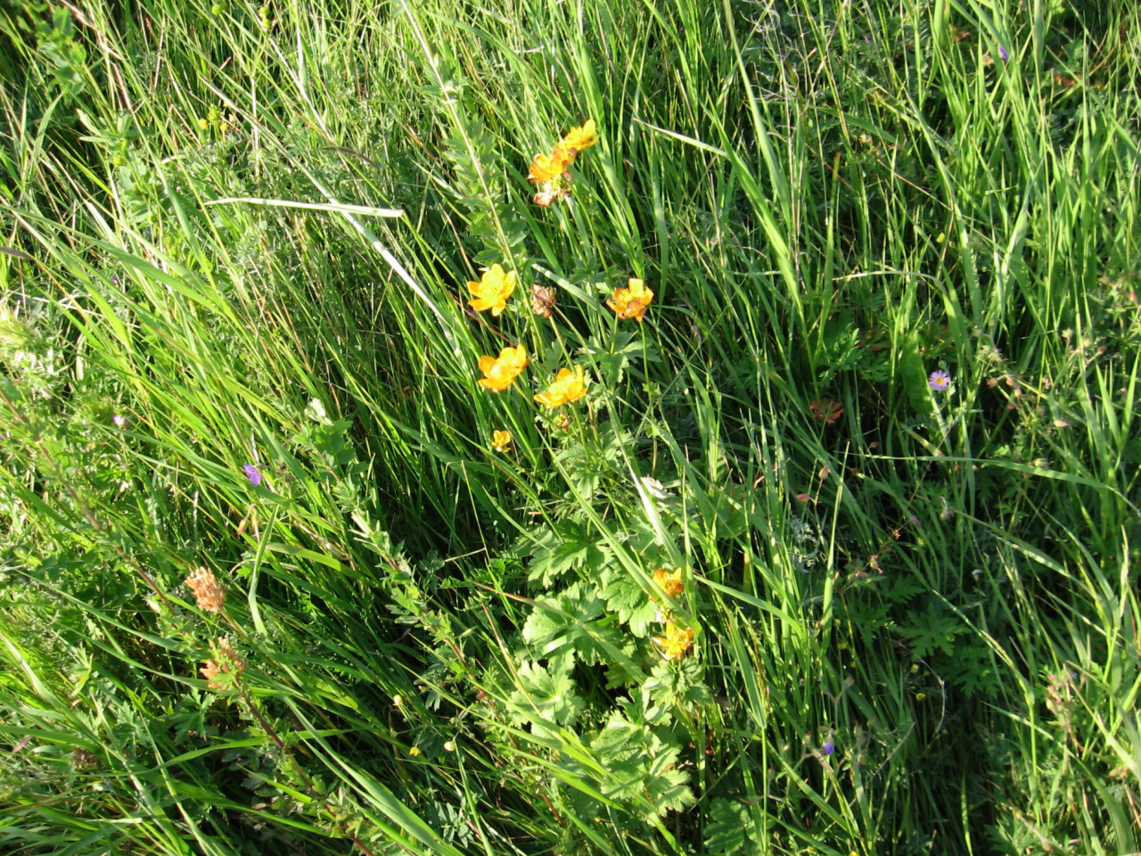 Здесь где не пасется скот обилие экзотических цветов. Ярко-синие колокольчики Живокости. Оранжевые Жарки. Мохнатые с виду невзрачные Эдельвейсы. И травостой не вытоптан. В травостое тропинки к вертолету.