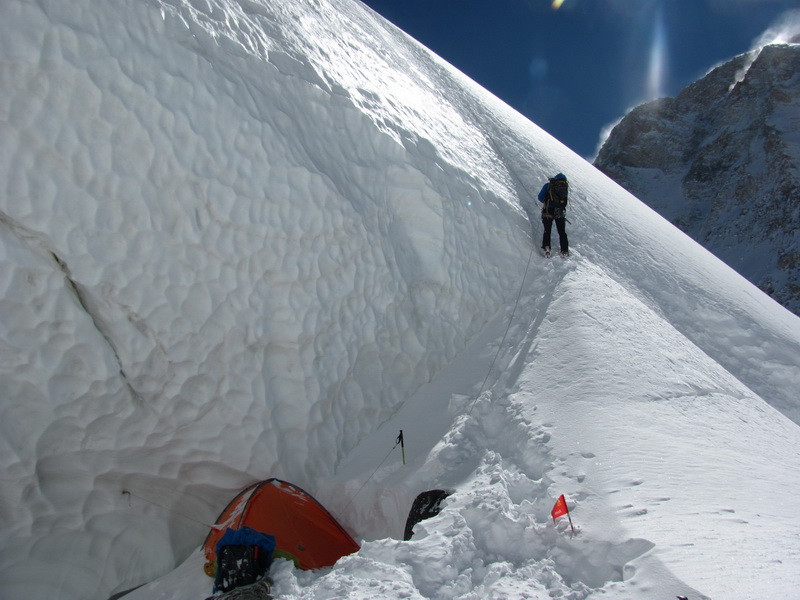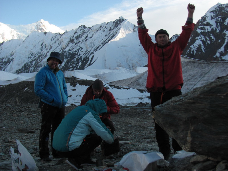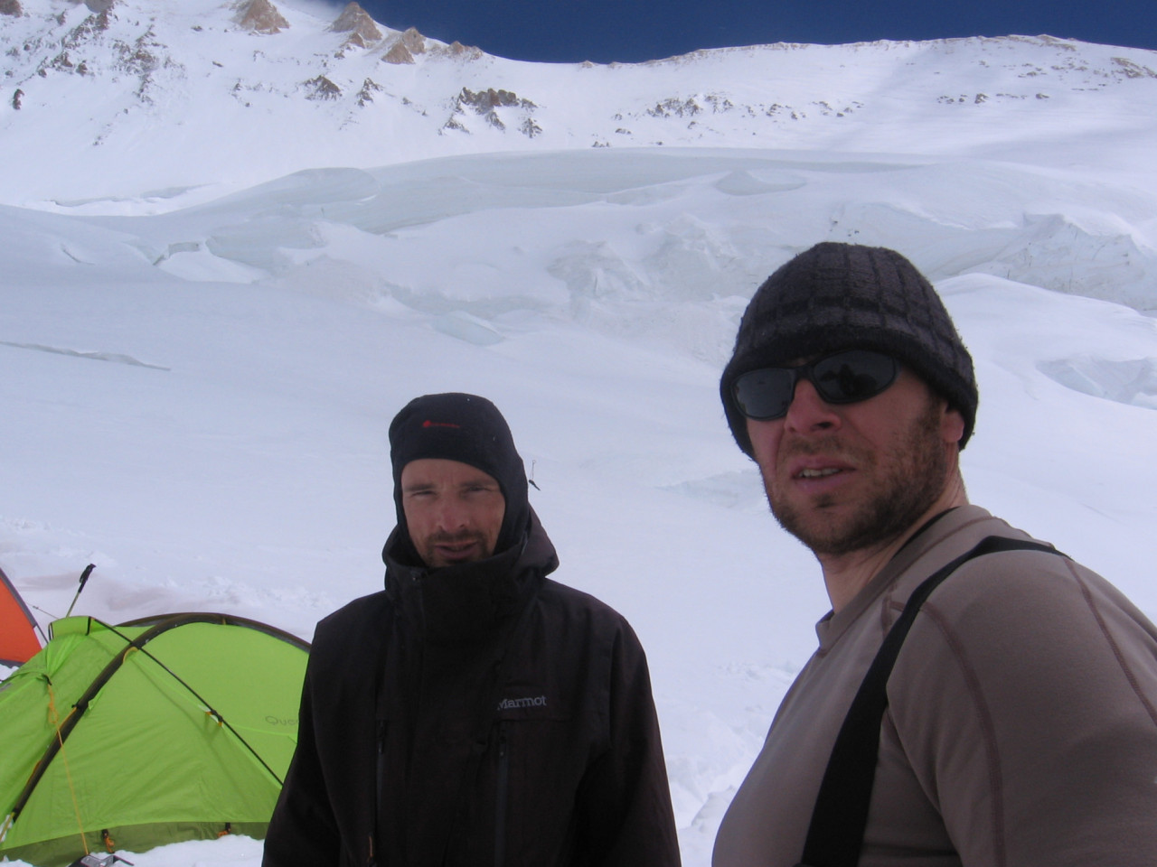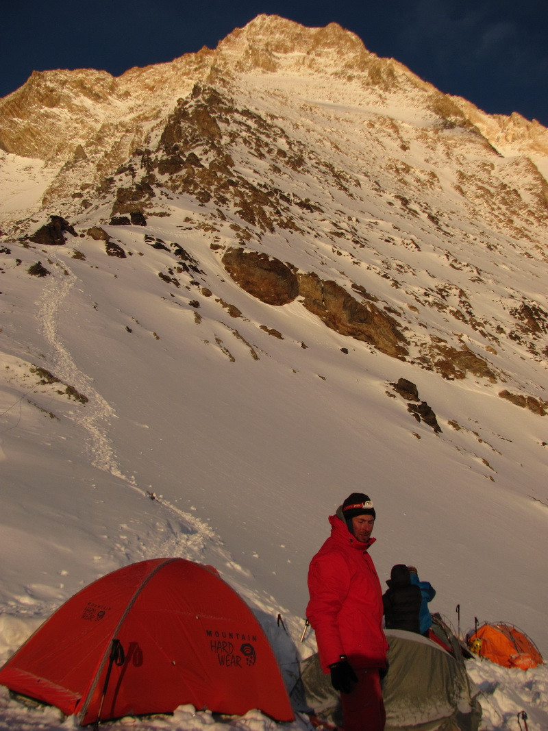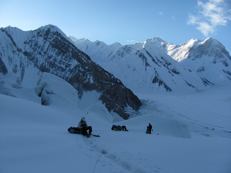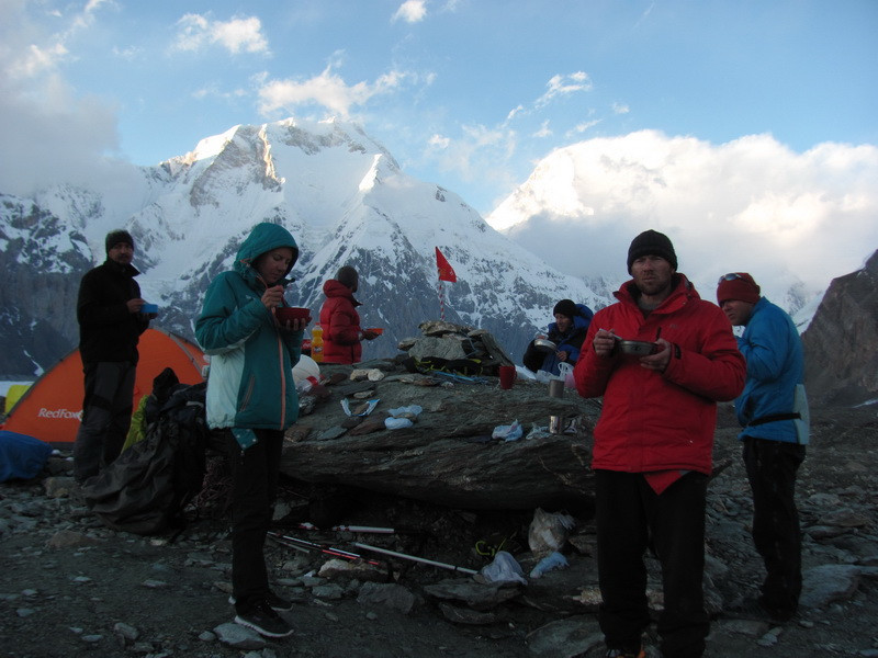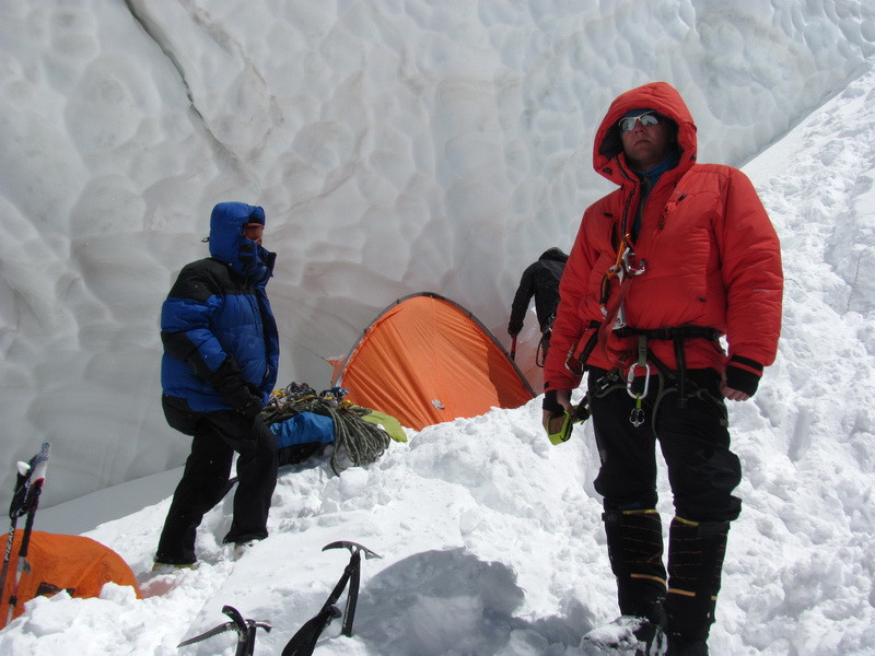 Как всегда, белорусы зарекомендовали себя хорошо. При первом акклиматизационном выходе принимали участие в спасении чеха Яна, получившего ожоги сетчатки и перенесшего холодную ночевку в районе высоты 6000 (тот же самый гребень). Свели его часть пути и согрели во втором лагере на 5800.