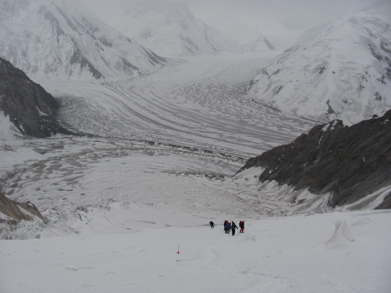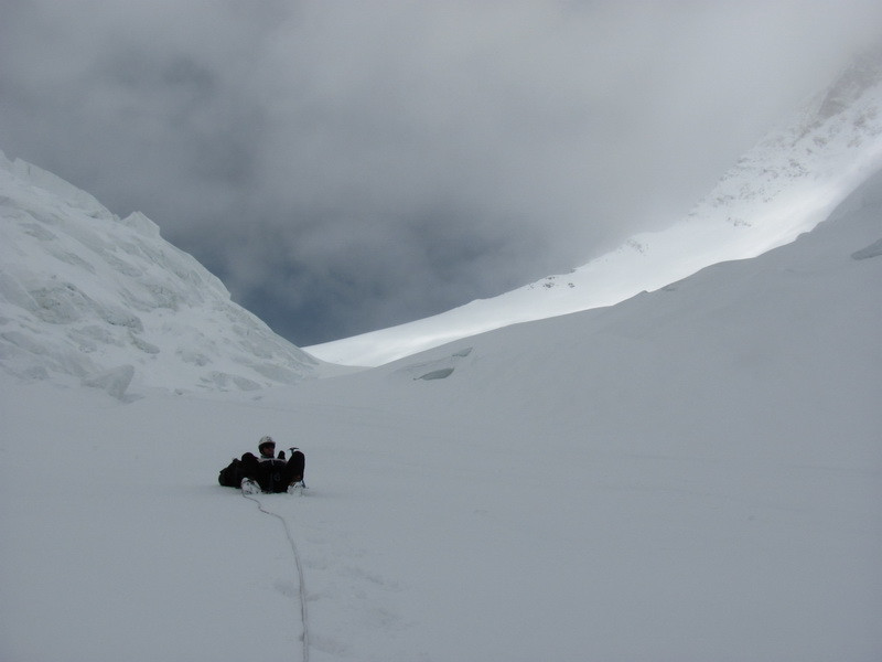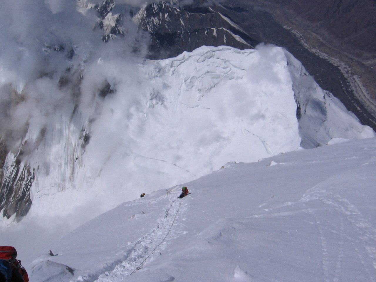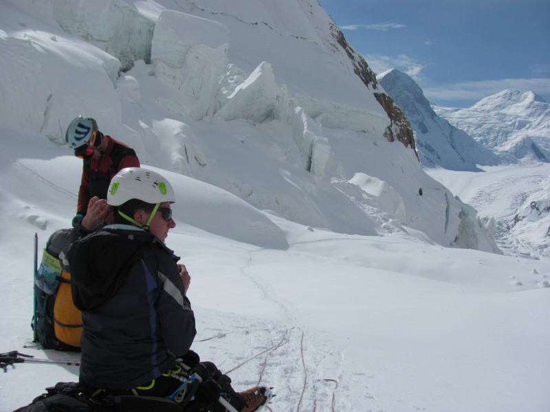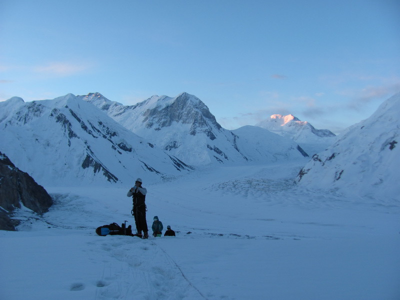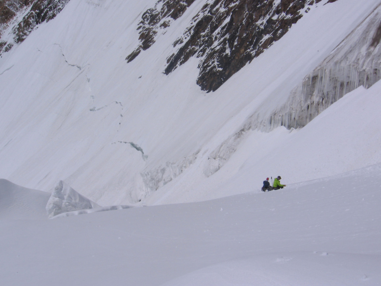 Как всегда, белорусы зарекомендовали себя хорошо. При первом акклиматизационном выходе принимали участие в спасении чеха Яна, получившего ожоги сетчатки и перенесшего холодную ночевку в районе высоты 6000 (тот же самый гребень). Свели его часть пути и согрели во втором лагере на 5800.
