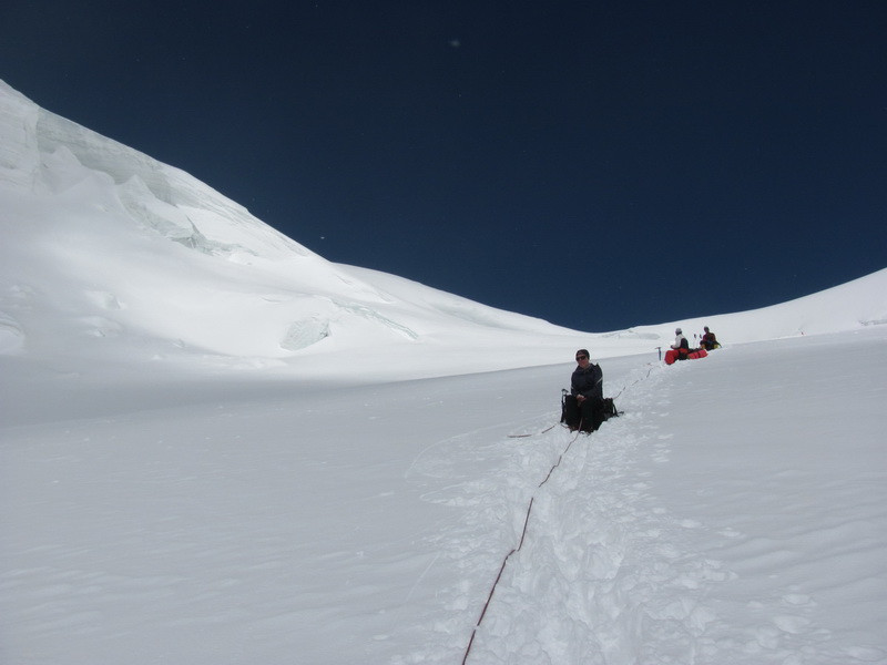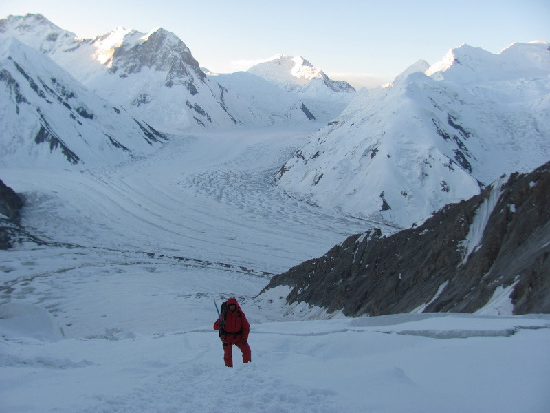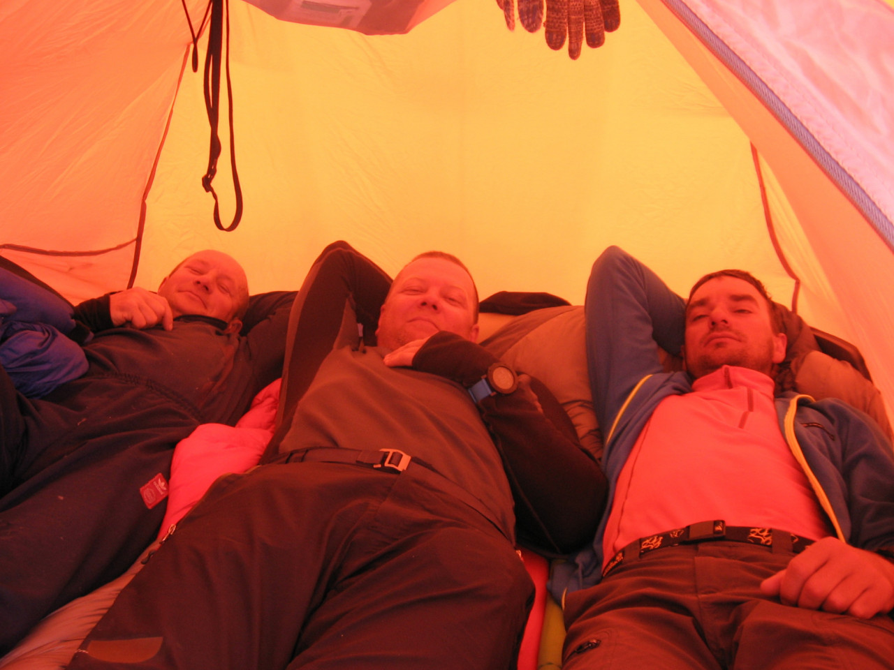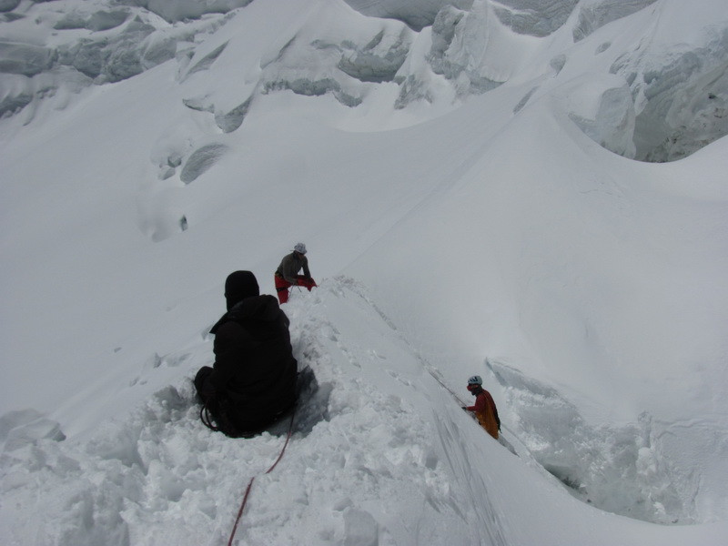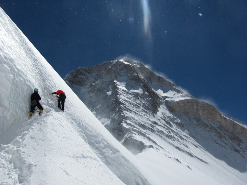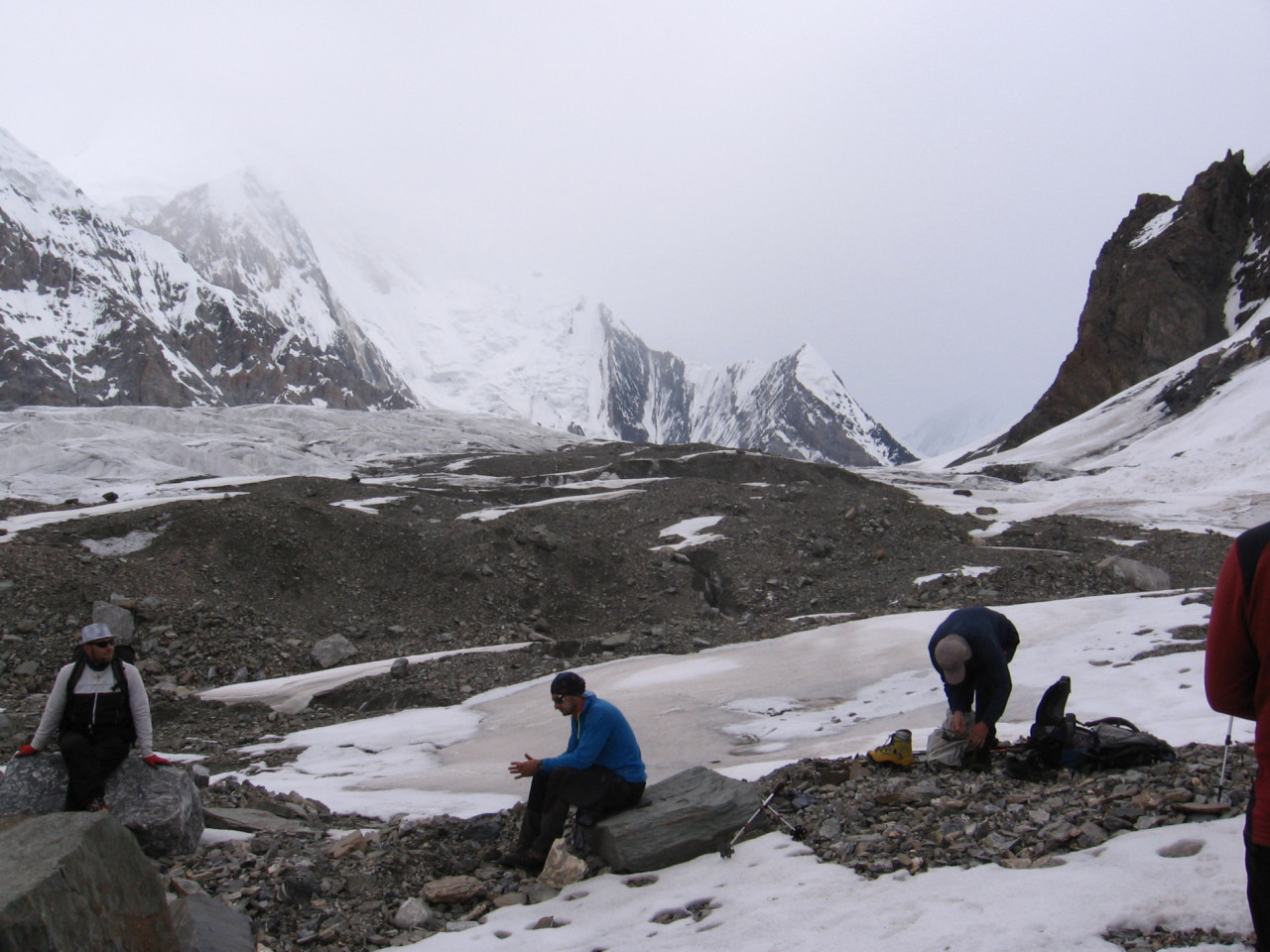 Как всегда, белорусы зарекомендовали себя хорошо. При первом акклиматизационном выходе принимали участие в спасении чеха Яна, получившего ожоги сетчатки и перенесшего холодную ночевку в районе высоты 6000 (тот же самый гребень). Свели его часть пути и согрели во втором лагере на 5800.