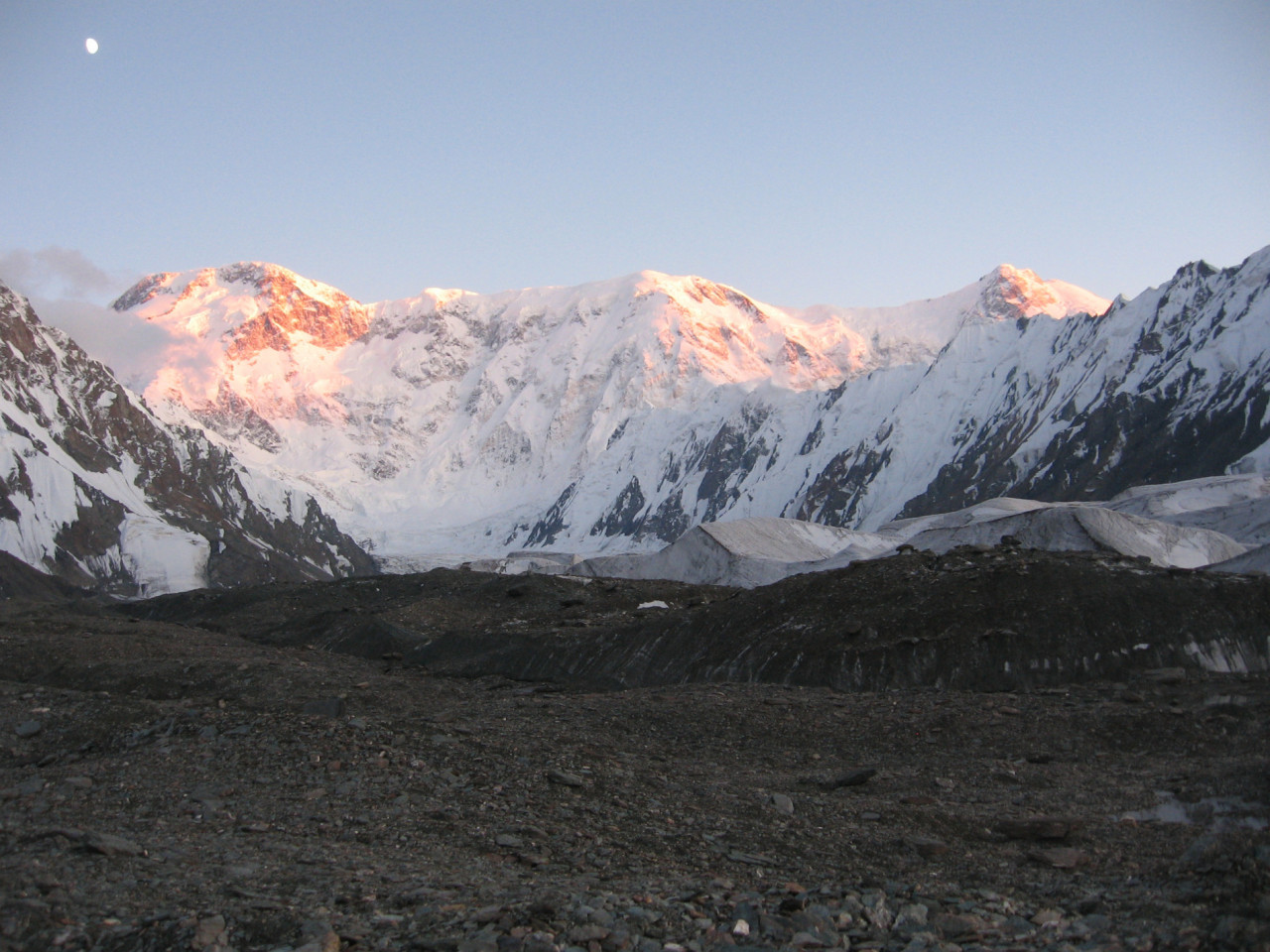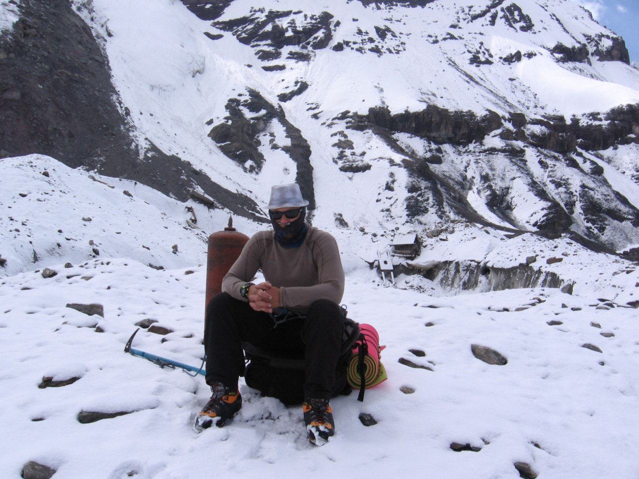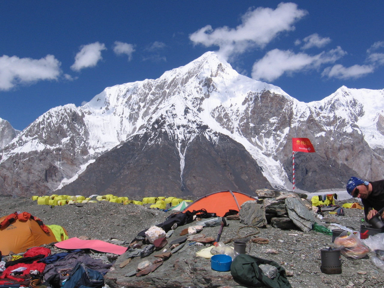 Социальная обстановка в базовом лагере благоприятная. На эти вершины ходят мотивированные люди. Встречаются в подавляющем большинстве профессионалы с хорошим снаряжением и очень дорогой одеждой, палатками и аксессуарами. Гопники не встречаются. На удивление много мусульман. Турки, иранцы. Ходят дружно. Богослужений я не видел. Когда лепят в лагере свои палатки рядом, ощущаешь себя в центре восточного базара. Но рано еще до захода солнца затихают. Маршруты коммерцизованны в приемлемой степени. Нам не пакетным участникам (пользовались услугами только вертолета) было комфортно. Зачастую не пренебрегали мы благами базового лагеря и за сносную цену добывали дополнительные съестные припасы. Коньяк, газированные воды, овощи.