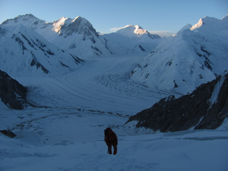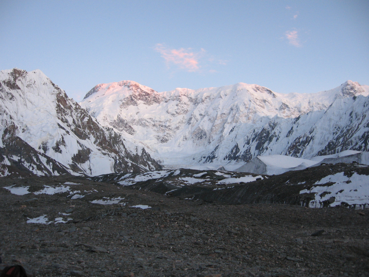 Этот год не обошелся без жертв на Пике Победы. Погибли трое спортсменов. Нам знаком гид Сергей Войличенко. Он сначала взошел на Хан-Тенгри, где для акклиматизации переночевал на вершине. Это было его не только акклиматизационной, но и моральной подготовкой к Пику Победы. Взошел он и на Пик Победы. На спуске же сорвался в районе высоты 6400 и, пролетев несколько сотен метров, разбился. Нам он запомнился, что ходит без кошек (не исключено, что это одна из причин срыва со склона) и много раз пересекался с нами на маршруте. Он располагал к разговору. Погиб 12 августа. В тот день закончилась наша активная часть похода.