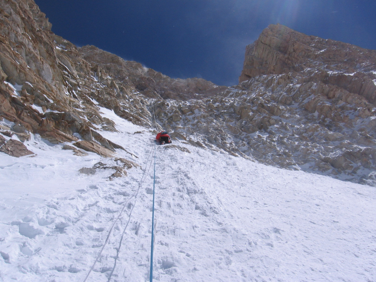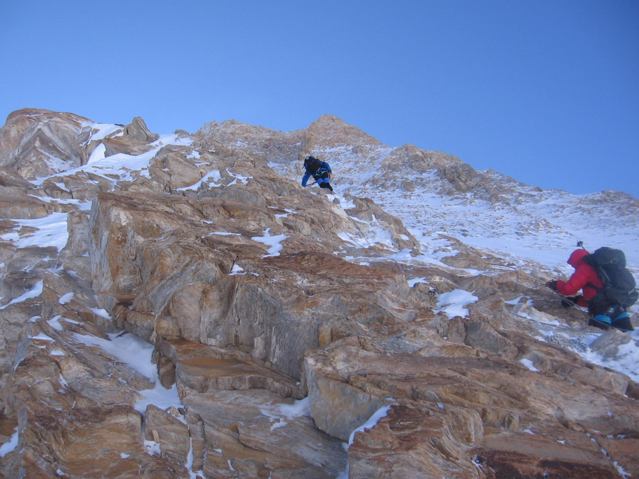 Технические требования к индивидуальной технике на пути восхождения на Хан Тенгри не высоки. Недостатки эти на маршруте с юга (имхо) можно компенсировать за счет физических качеств. Маршрут пропериллен. Вылазить технически сложные ключи не требуется. Более трудные участки можно выжумарить. Хватить должно именно сил и дыхания.
