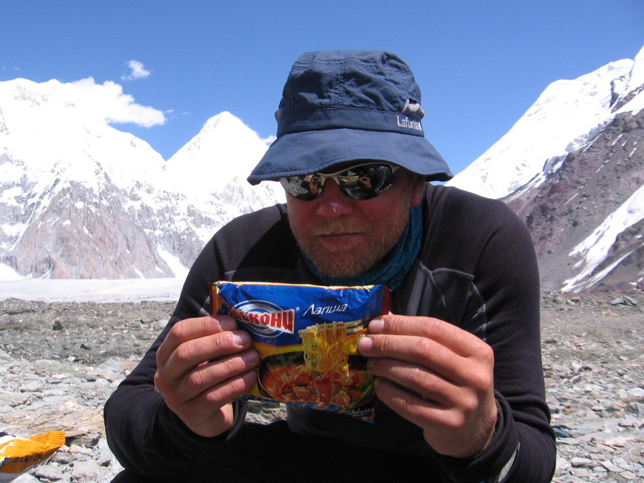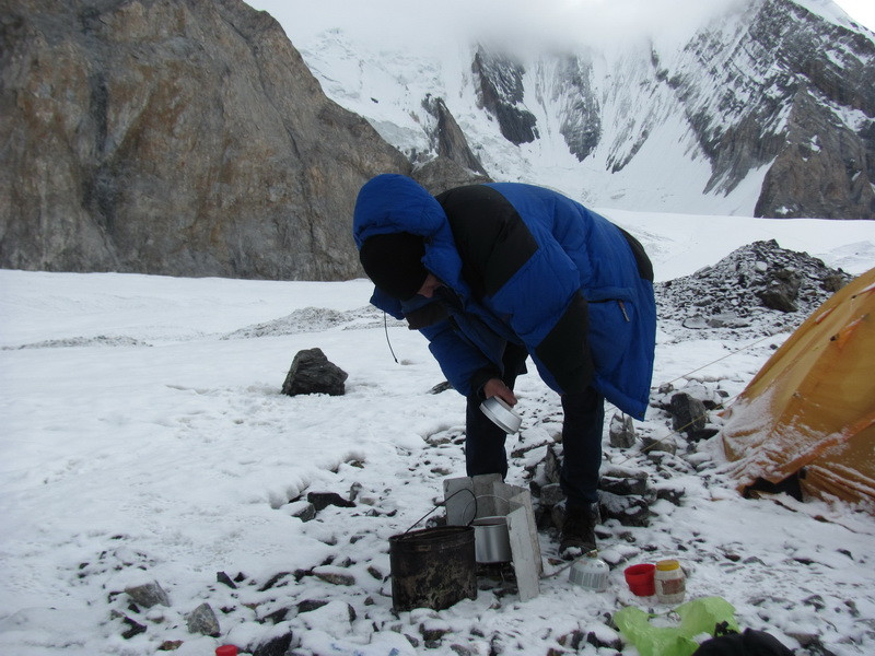 Глаз был в таком хорошем расположении духа, что даже не напрягался тому, что тот меценатствует: зазывает в лагерь всяких левых иностранцев и переводит на них Глазов драгоценный спирт (приобретение, перевозки и переноски). На леднике иметь спиртное особенно ценно.